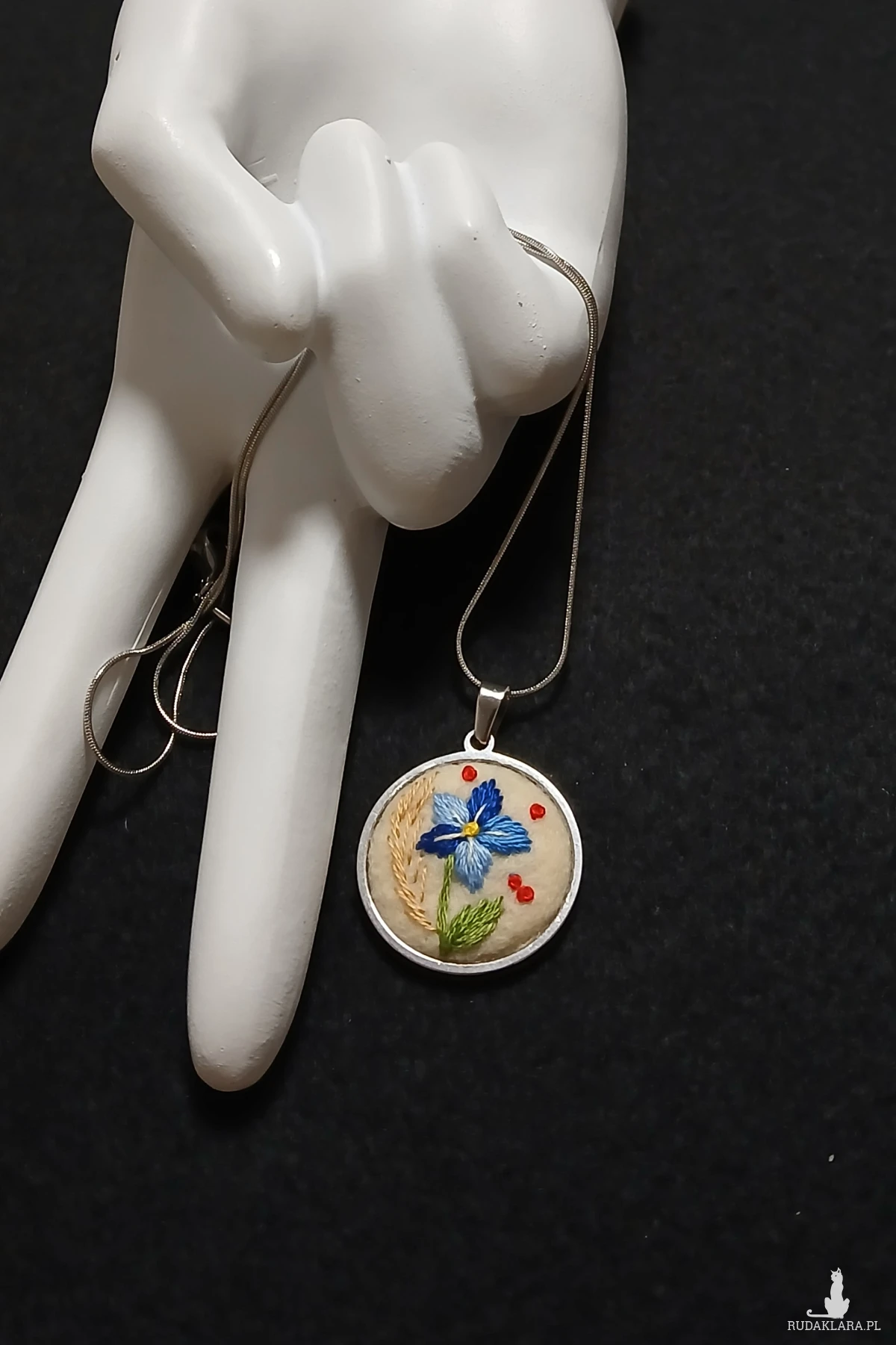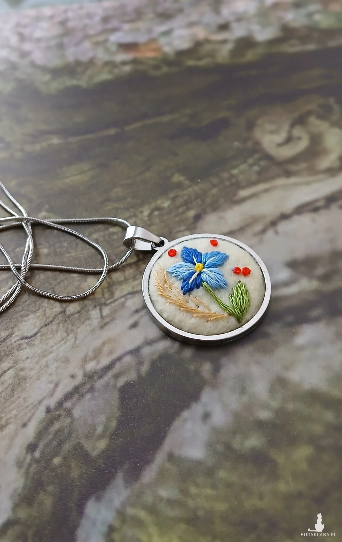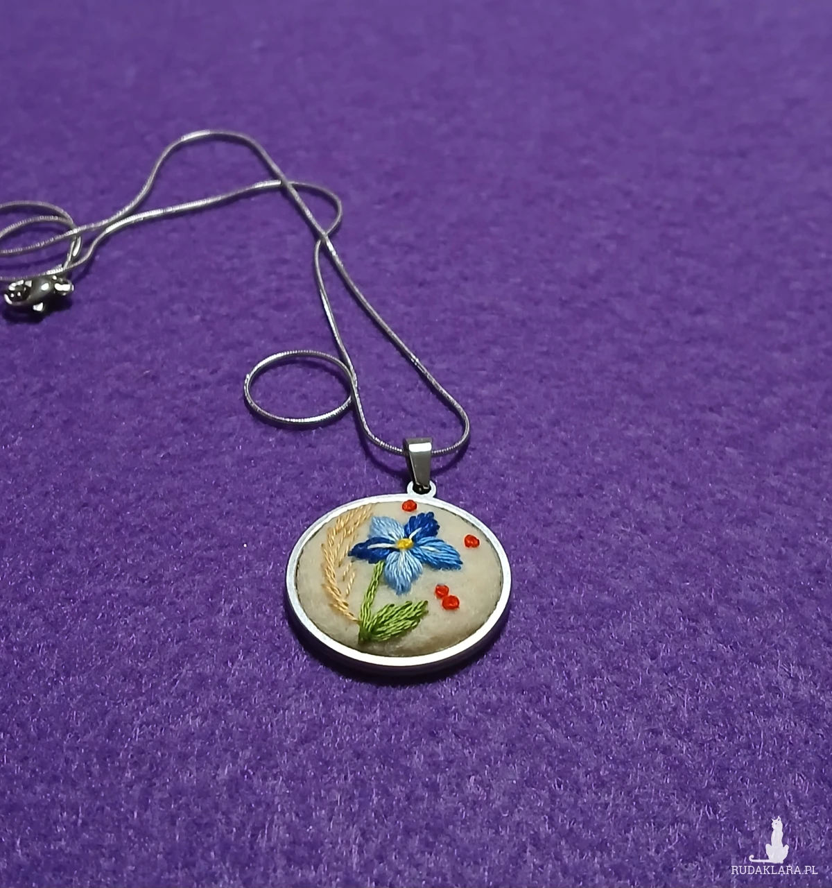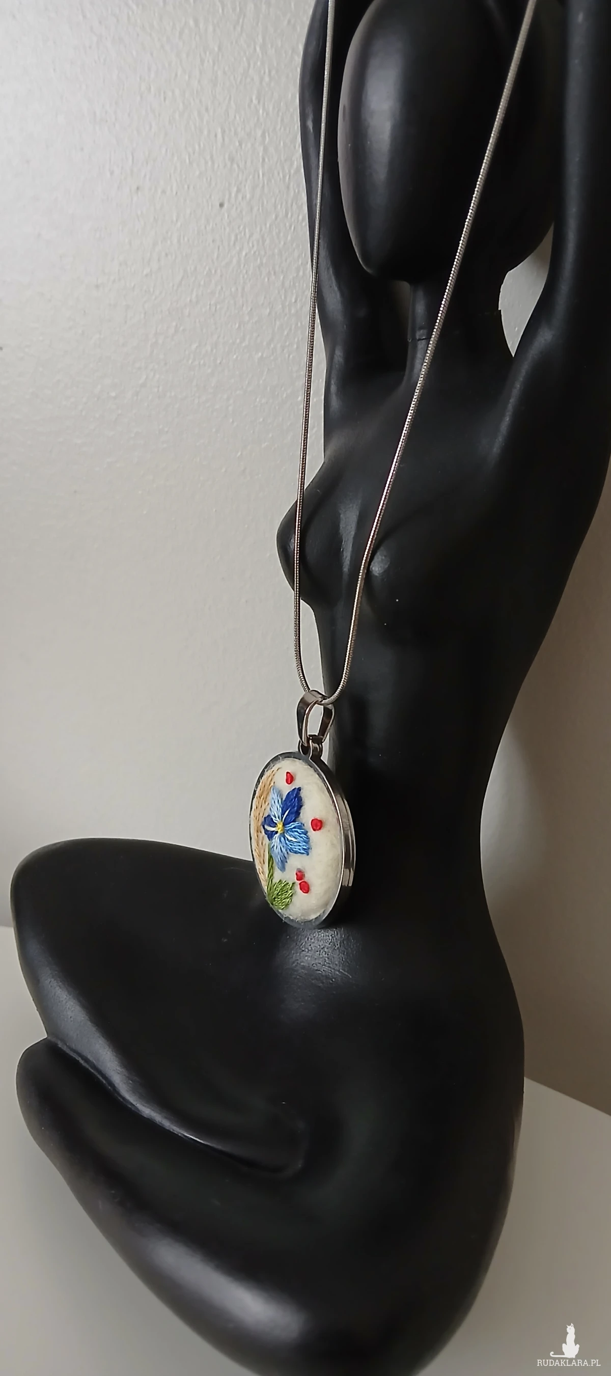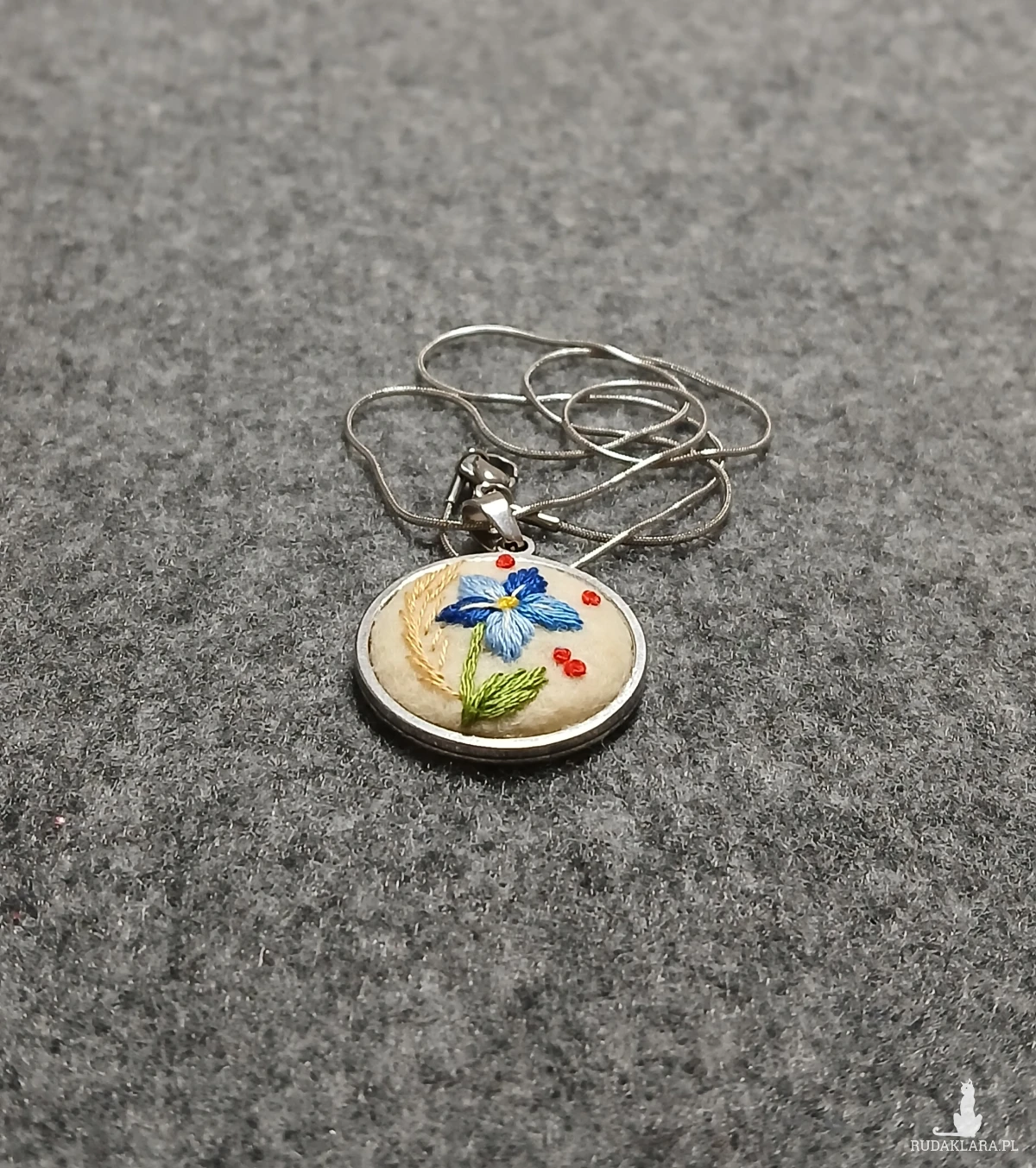 Perfekcyjnie dopracowany haft na filcu wykonałam polską bawełnianą muliną za pomocą igły. Jest on zabezpieczony impregnatem do tkanin ale po dłuższym użytkowaniu można go odświeżyć przy pomocy delikatnego mydła i letniej wody.