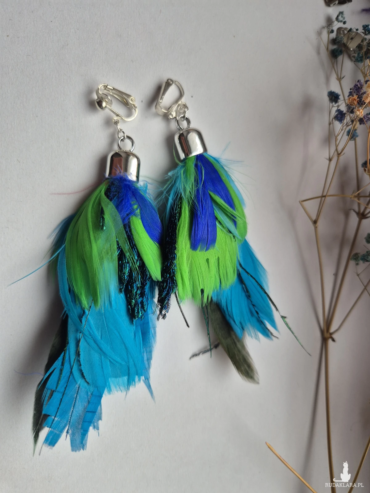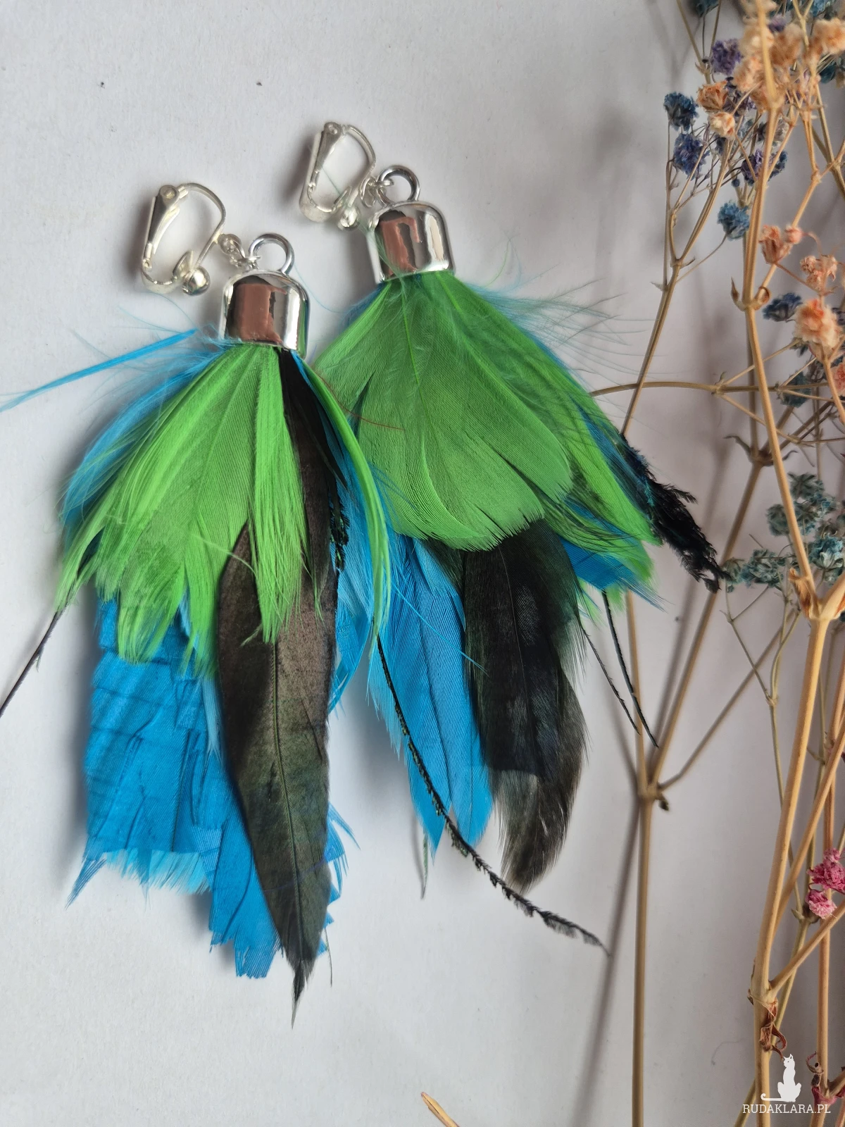 Klipsy pióra wykonane w pojedynczym egzemplarzu piękne polecam