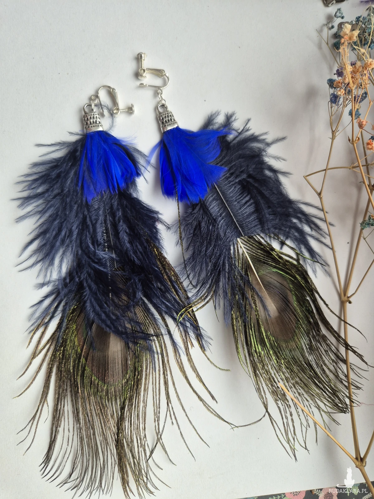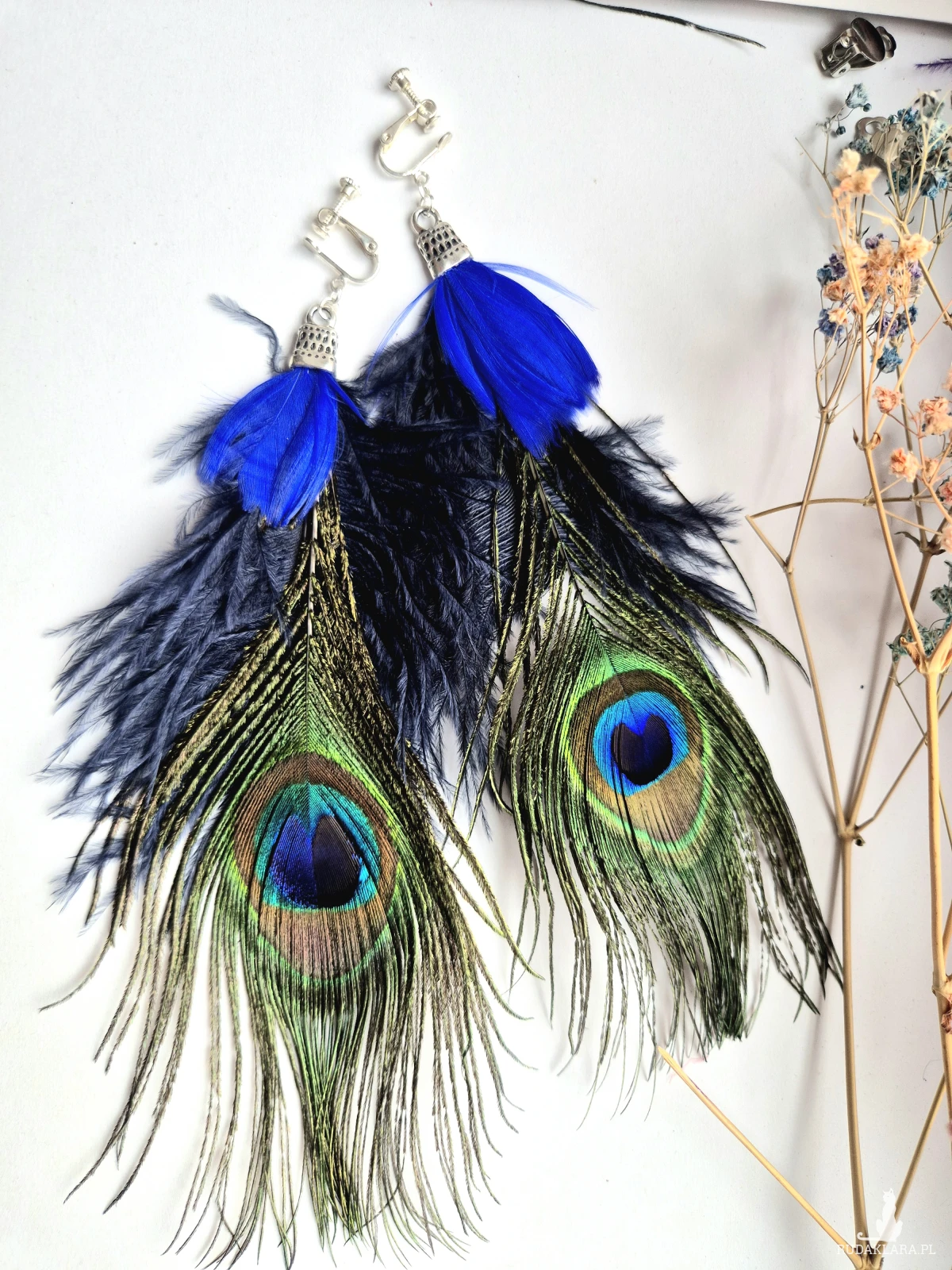 Klipsy pióra wykonane w pojedynczym egzemplarzu piękne polecam