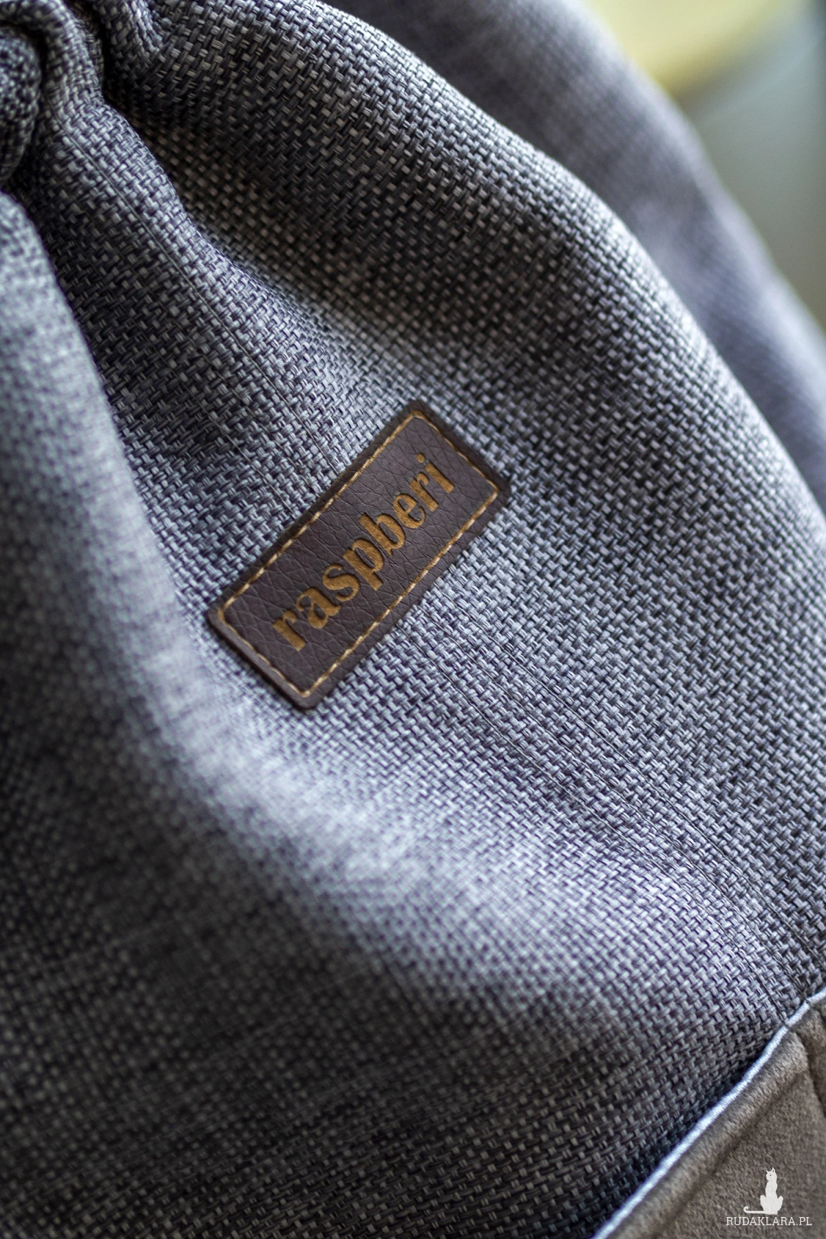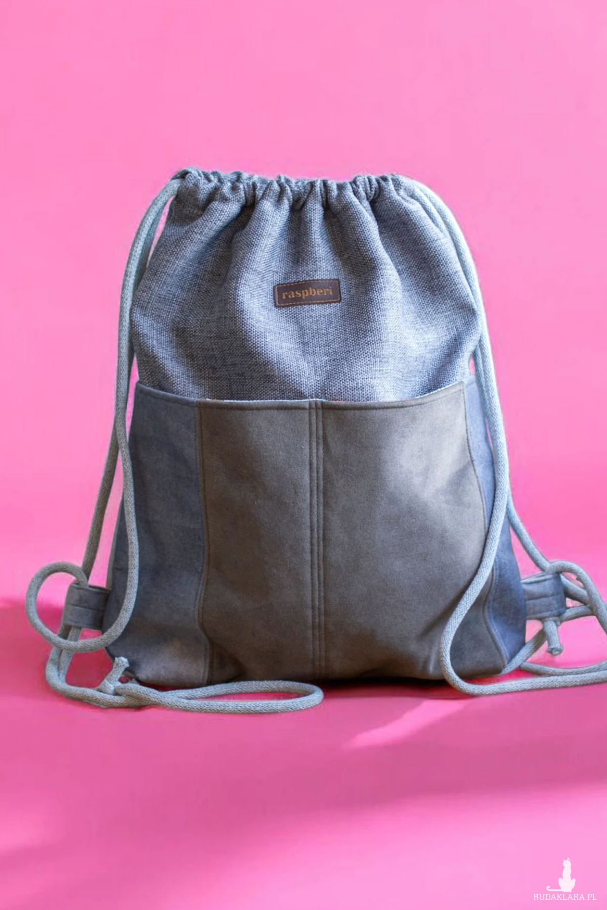 Workoplecak z plecionej tkaniny w kolorze szarym.