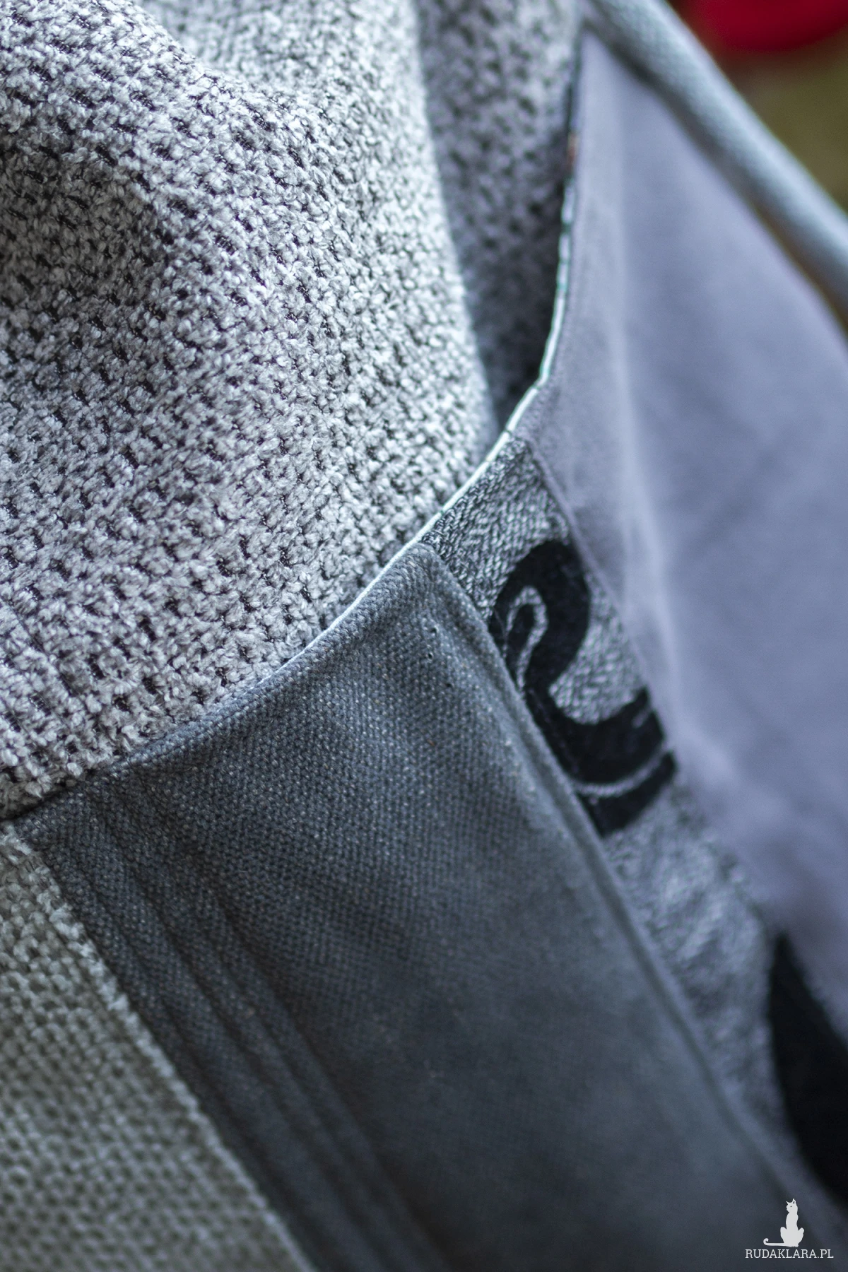 Dół tworzy dodatkowe miejsce na przechowywanie rzeczy - z przodu dwie kieszenie (np. na butelkę), z tyłu jedną duża kieszeń (idealna na tablet). Wykonane z kilku rodzajów tkanin w stylu patchworkowym.
