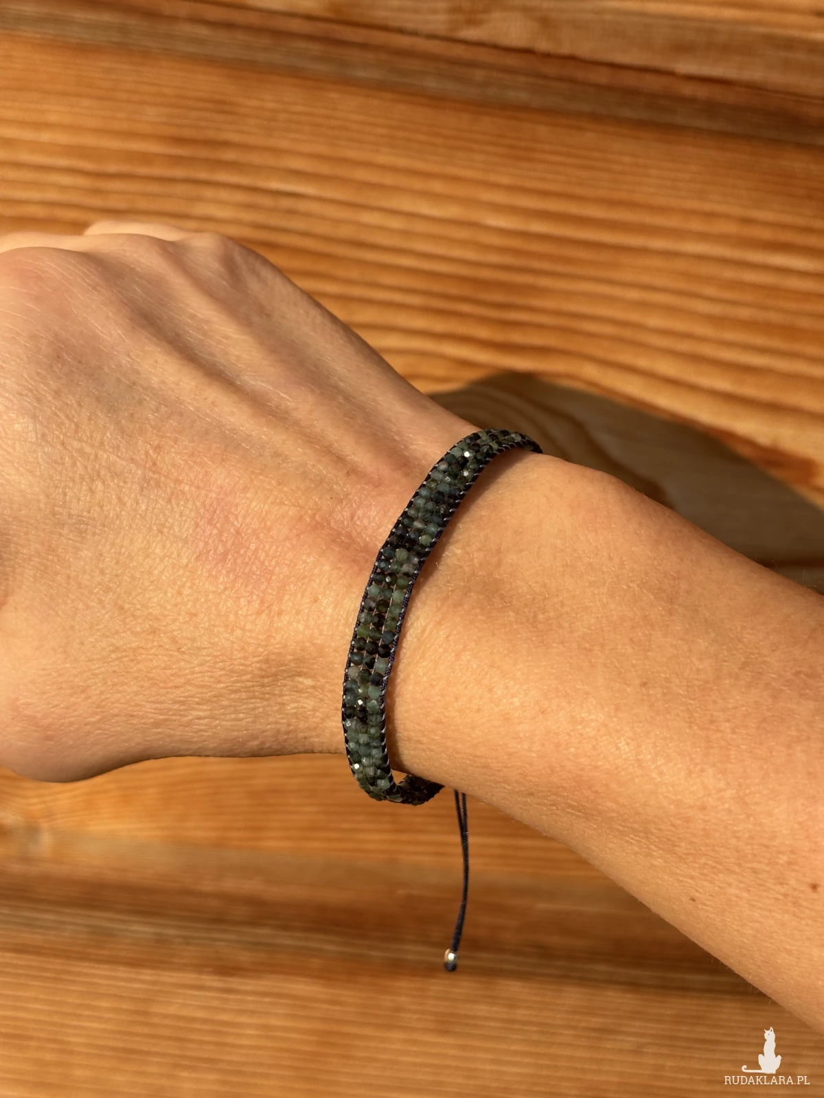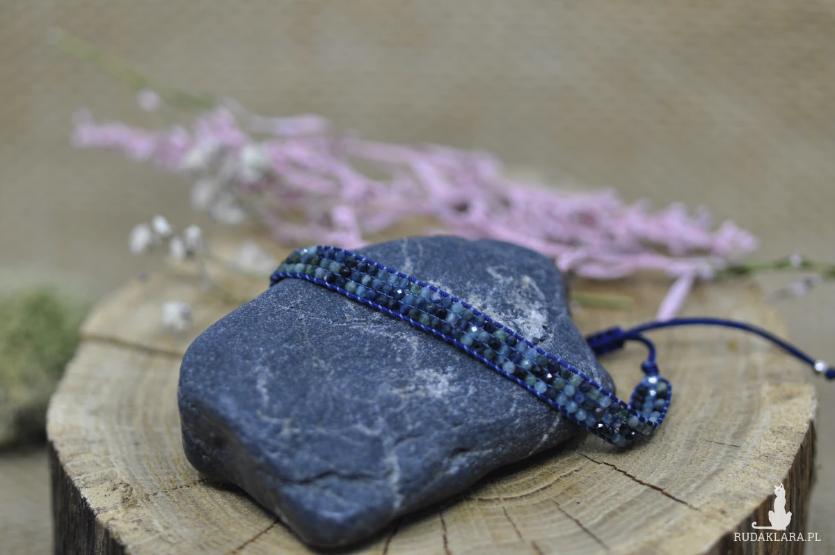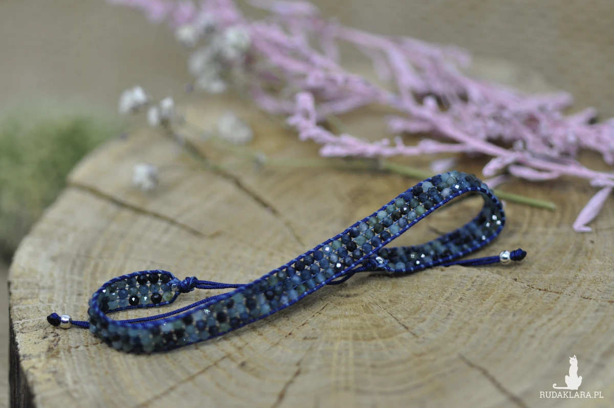 Materiały użyte do wykonania tej bransoletki oprócz turmalinu, to sznurek nylonowy, nić Miyuki, koraliki srebrne próby 925.