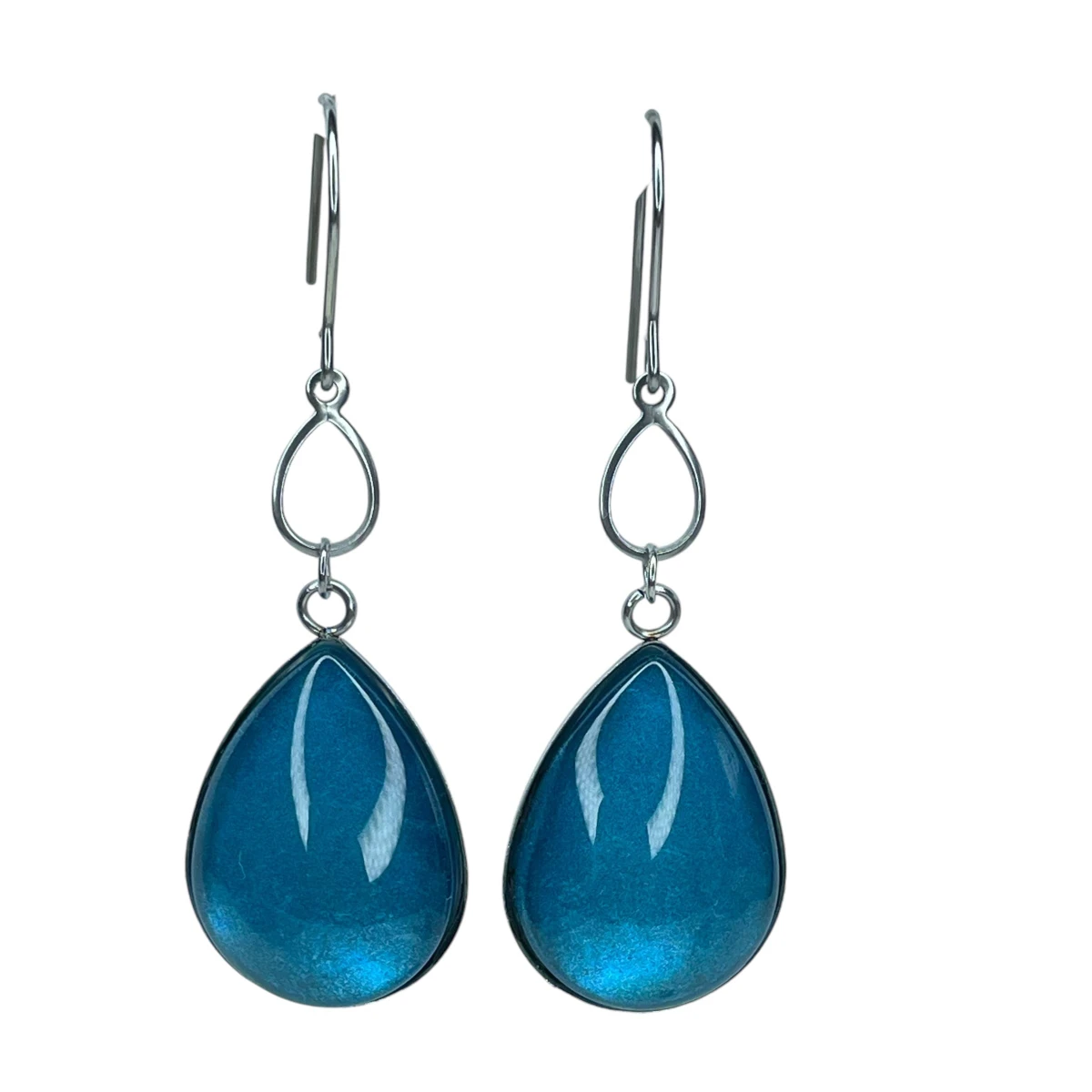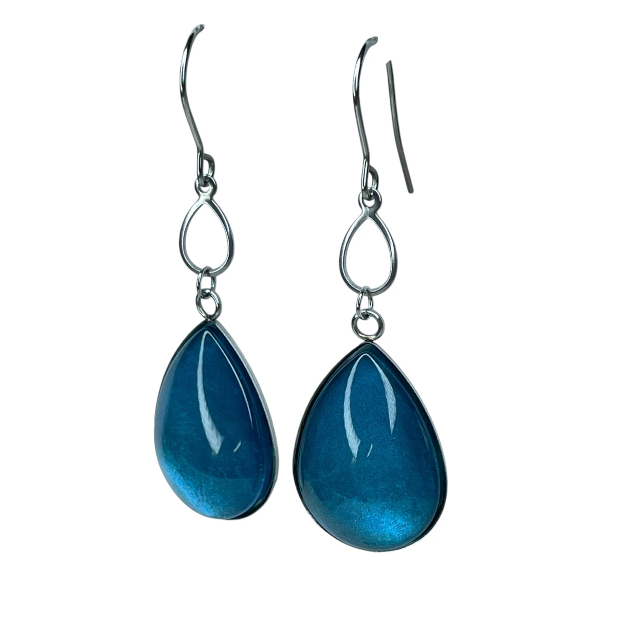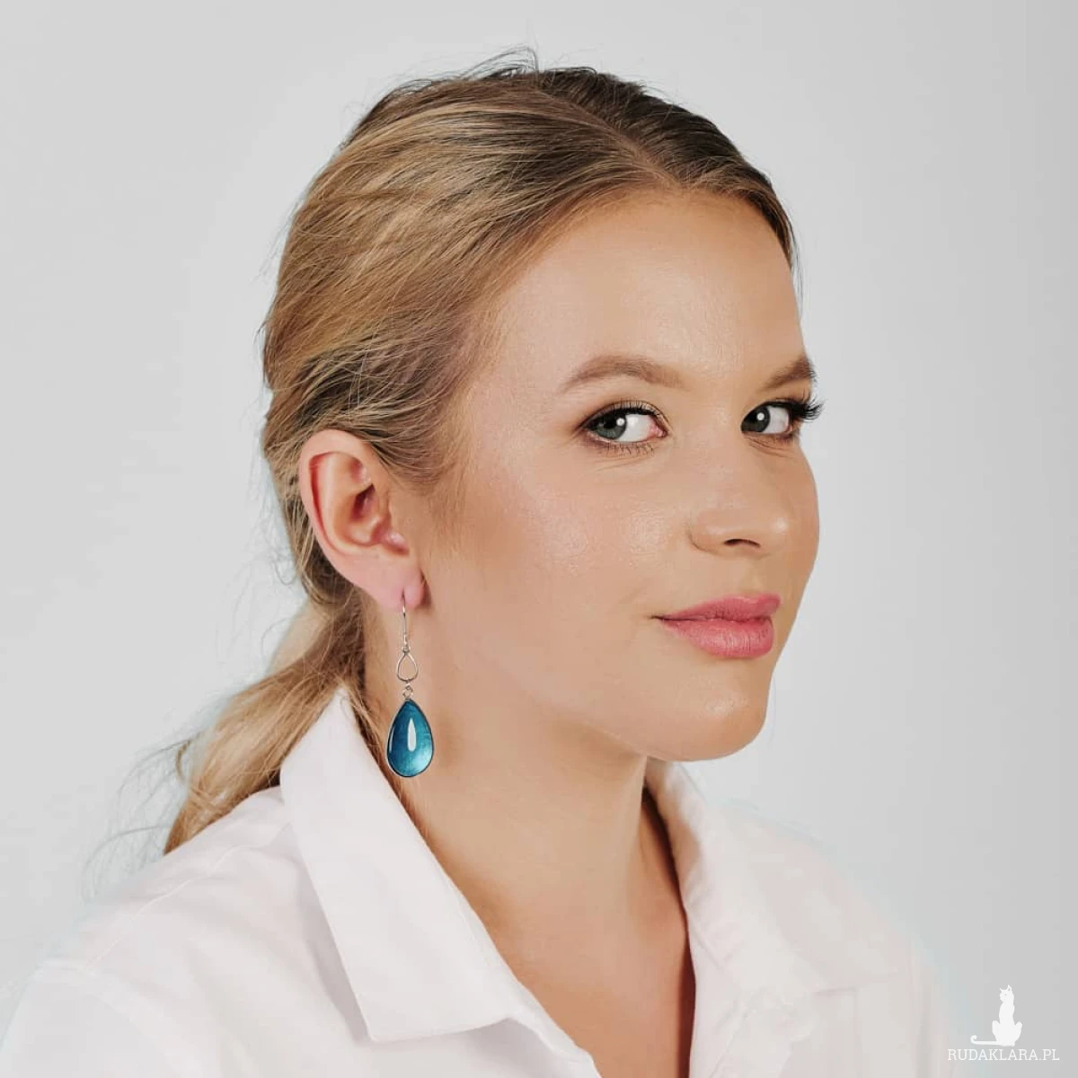 Te pełne blasku kolczyki są częścią kolekcji “W blasku perłowego księżyca”. Kolczyki wykonane są z ręcznie malowanych kaboszonów umieszczonych w bazach ze stali szlachetnej. Szklane elementy zachwycają subtelnym, opalizującym blaskiem, który jest niczym odbicie księżyca na tafli wody. Kolczyki mienią się w świetle, przyciągając wzrok i dodają elegancji każdej stylizacji. Ten dodatek jest idealny dla osób ceniących sobie wyrafinowaną i ponadczasową biżuterię. Materiał: stal szlachetna, malowane ręcznie szkło Długość kolczyków: ok 6,5 cm Średnica kaboszonu: 25×18 mm SKU: e38/14 Jak dobierać komplety? Kolory na zdjęciach mogą się różnić ze względów technicznych. Aby dobrać identyczny odcień, zwróć uwagę na numer SKU produktu. Pierwsza część to numer modelu, a numery po “/” to kolor, np. /17 oznacza morski perłowy. Produkty z tym samym SKU po "/" mają identyczny kolor. Dzięki temu możesz łatwo tworzyć komplety, mając pewność, że biżuteria jest w tym samym odcieniu. Stwórz własny komplet! Jeśli nie ma biżuterii w wybranym modelu lub kolorze którego szukasz, możesz ją zamówić indywidualnie. Wyślij do nas maila z nazwą, numerem modelu i kolorem, a my w miarę możliwości wykonamy biżuterię na zamówienie. Termin realizacji ustalamy indywidualnie. Biżuteria zostanie elegancko zapakowana. W przypadku zakupu kompletu, biżuteria zostanie zapakowana razem. Kolory na zdjęciach mogą delikatnie różnić się od rzeczywistych.