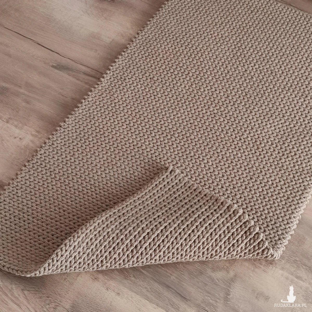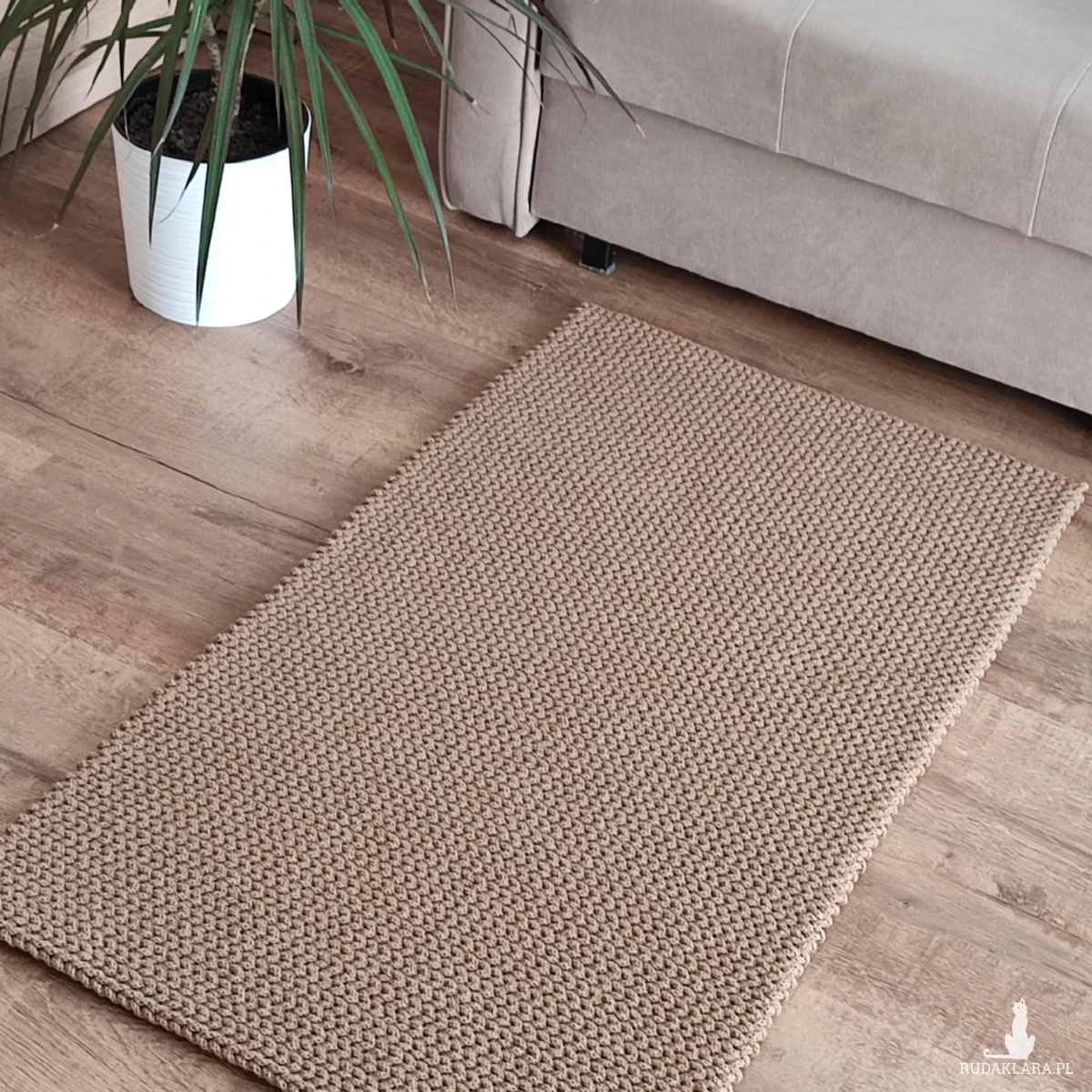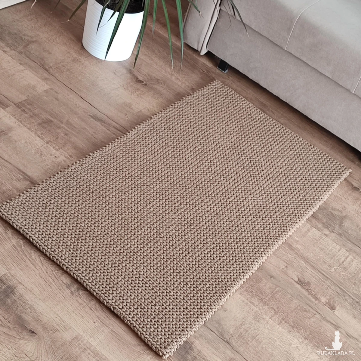 Dywan o wymiarach 60cmx110cm, wykonany metodą szydełkowania z polskiego sznurka bawełnianego 5mm.
