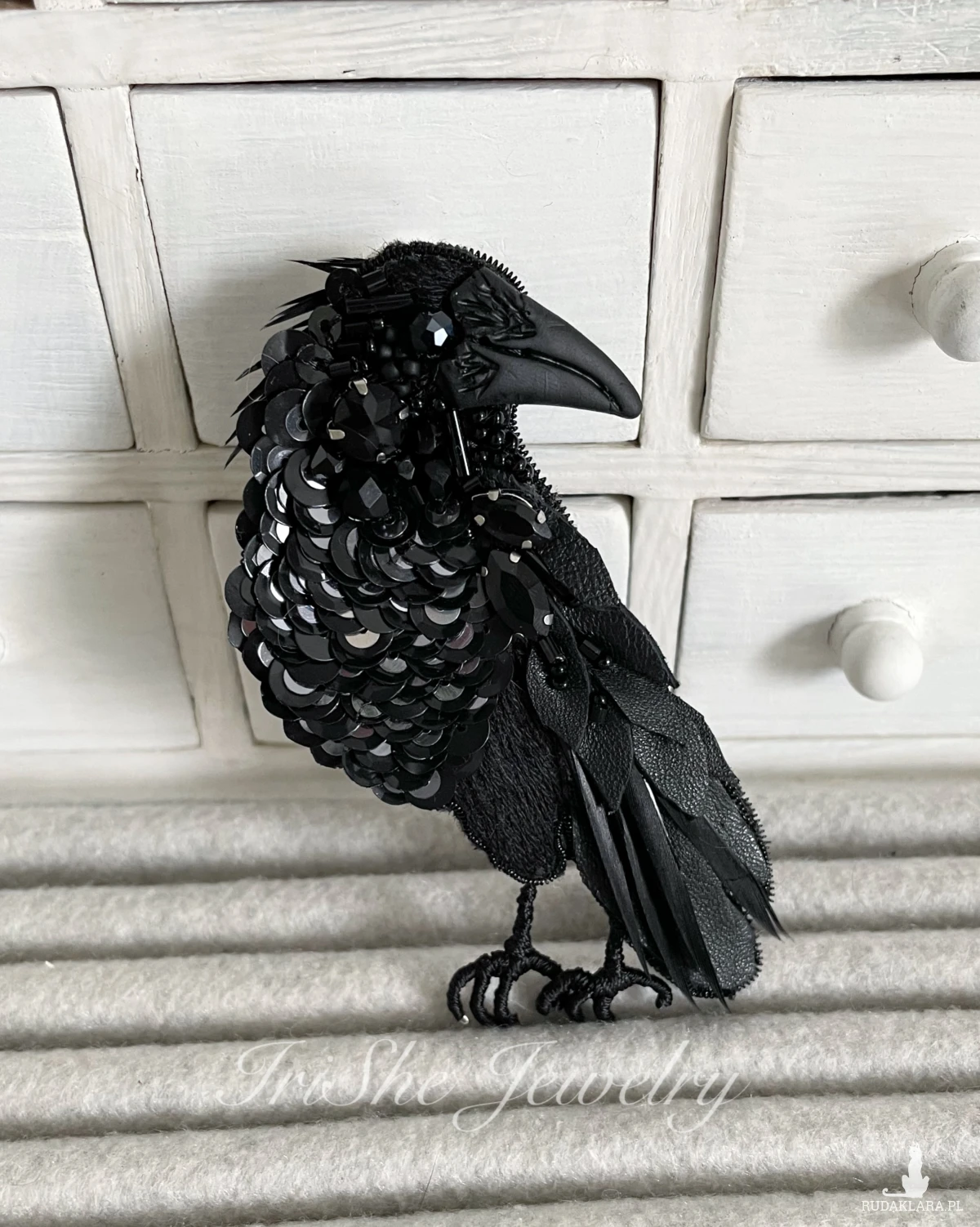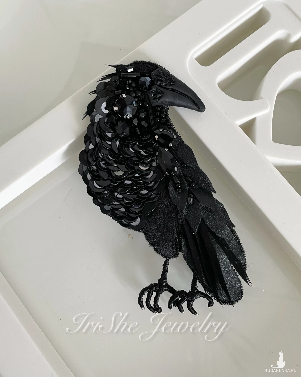 Autorska Broszka „Kruk” – unikatowa biżuteria artystyczna z głęboką symboliką. Nowa.