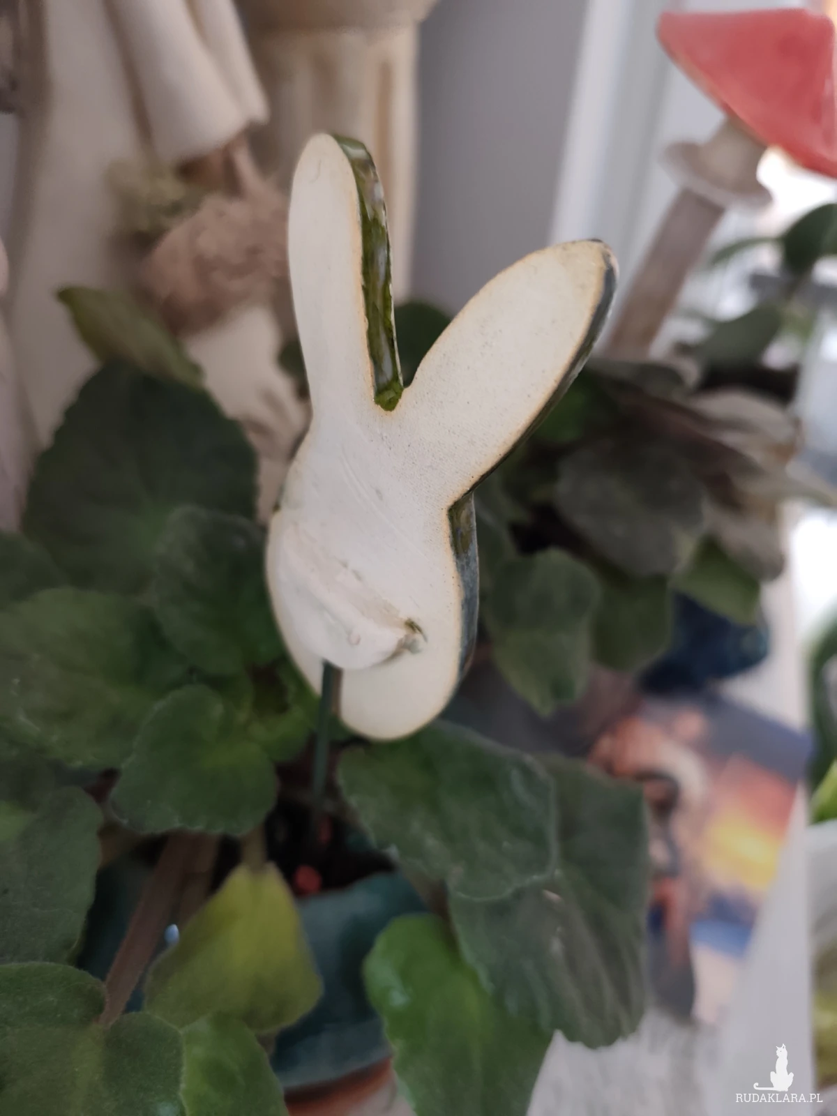 Królik ceramiczny na druciku do wbicia w kwiatka... uroczy dodatek do Twojego domu.
