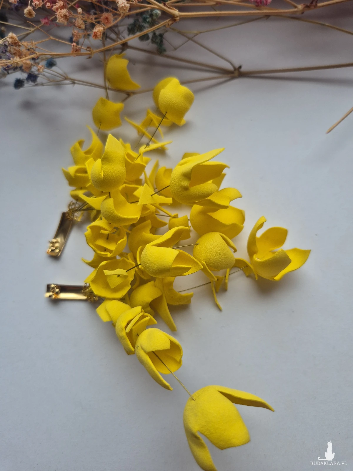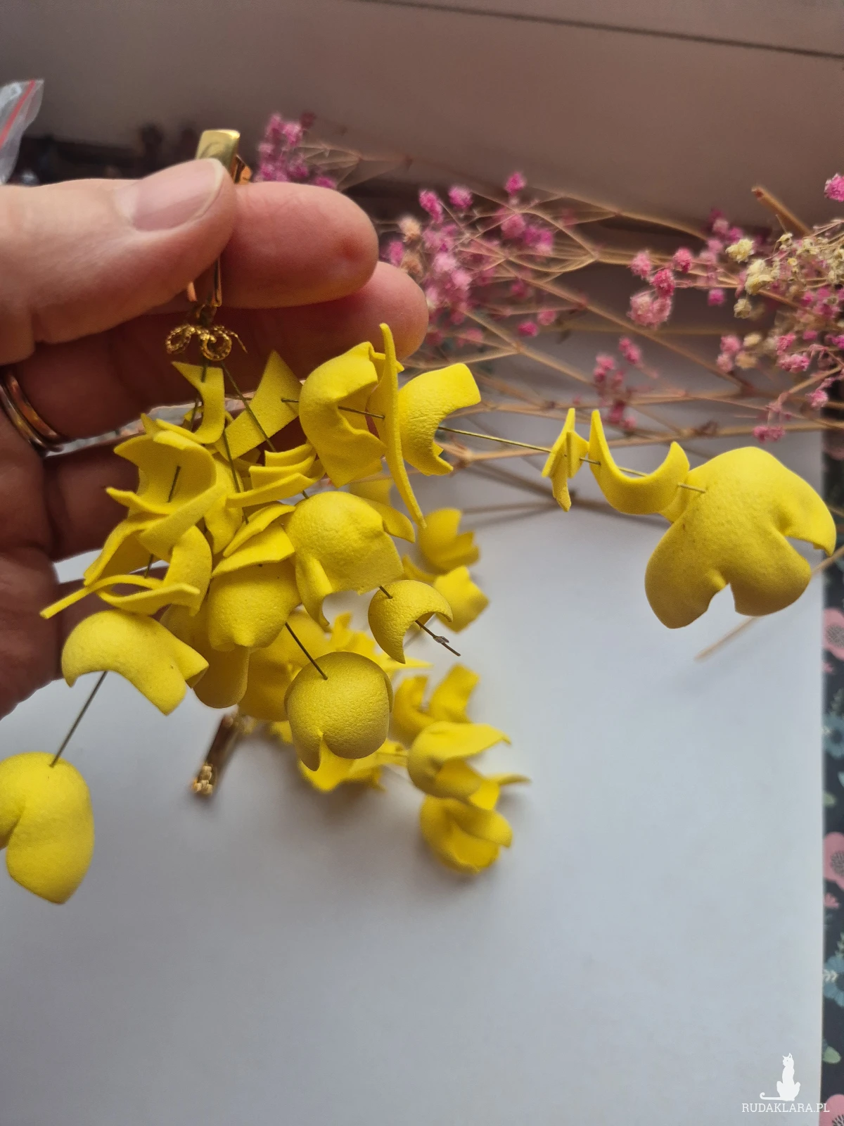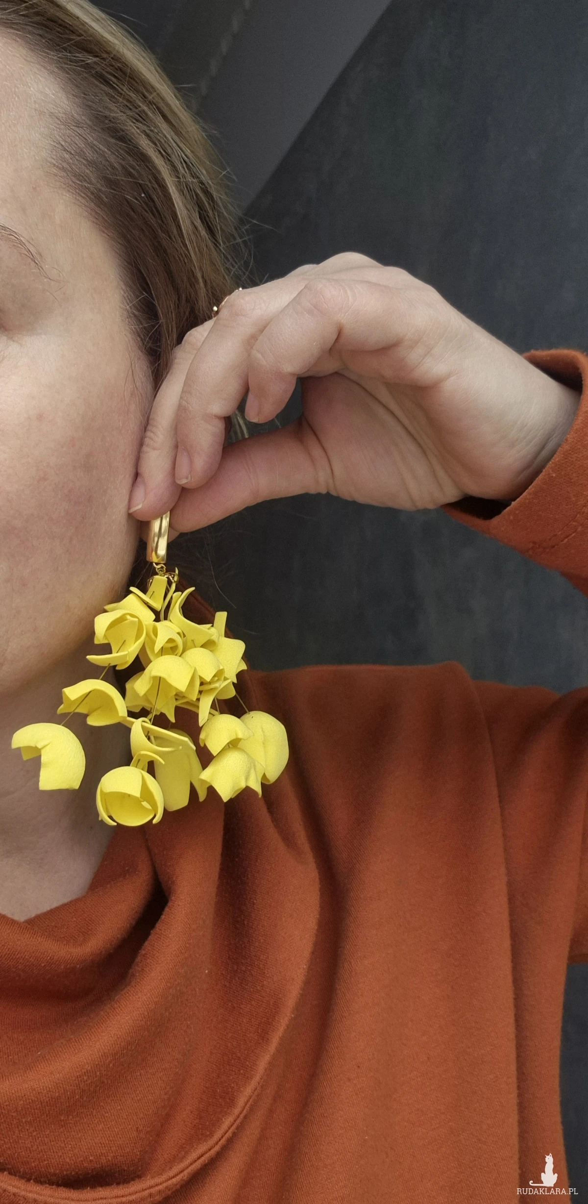 Kolczyki duże lekkie żólte  kwiaty rękodzieło