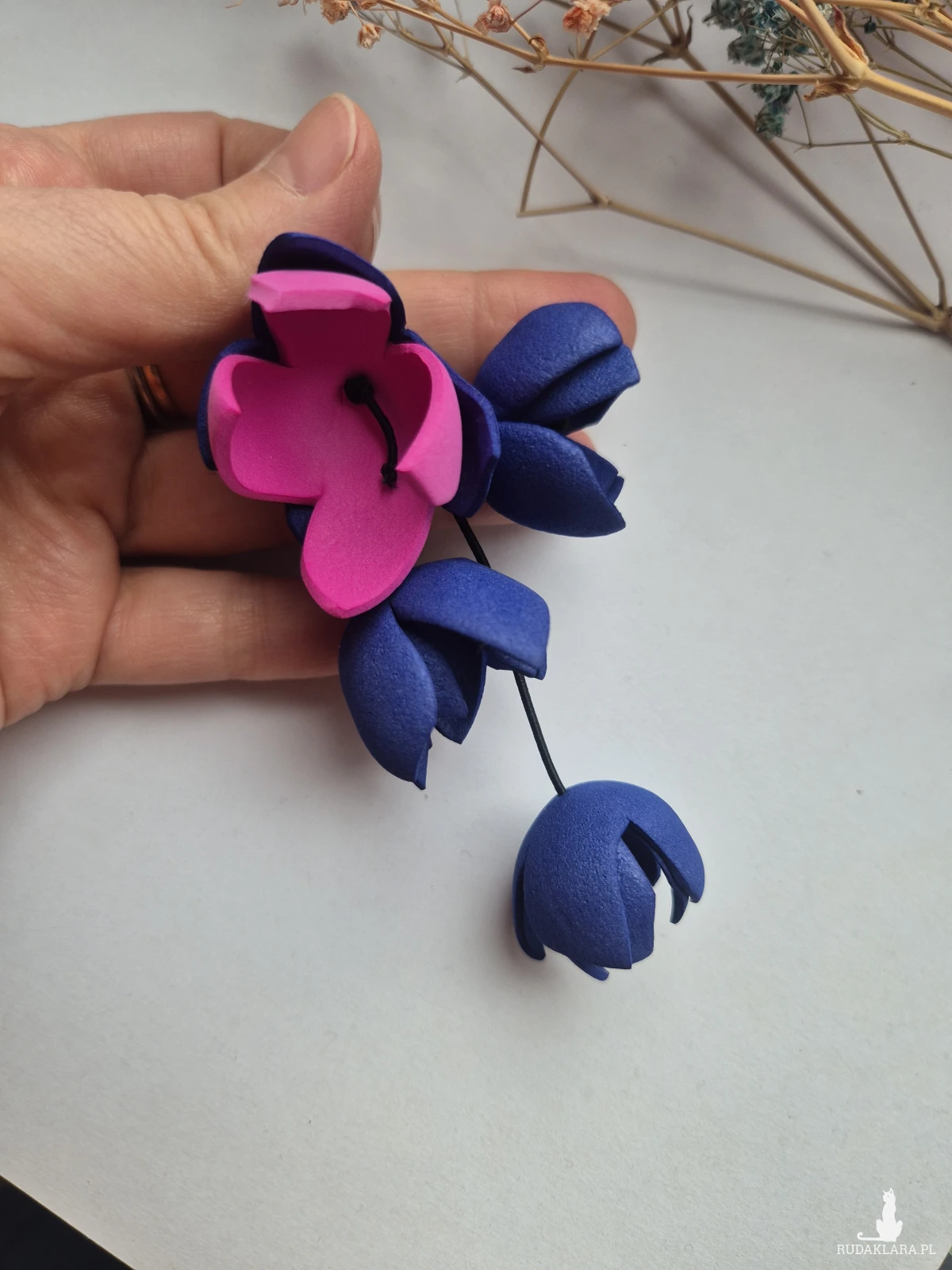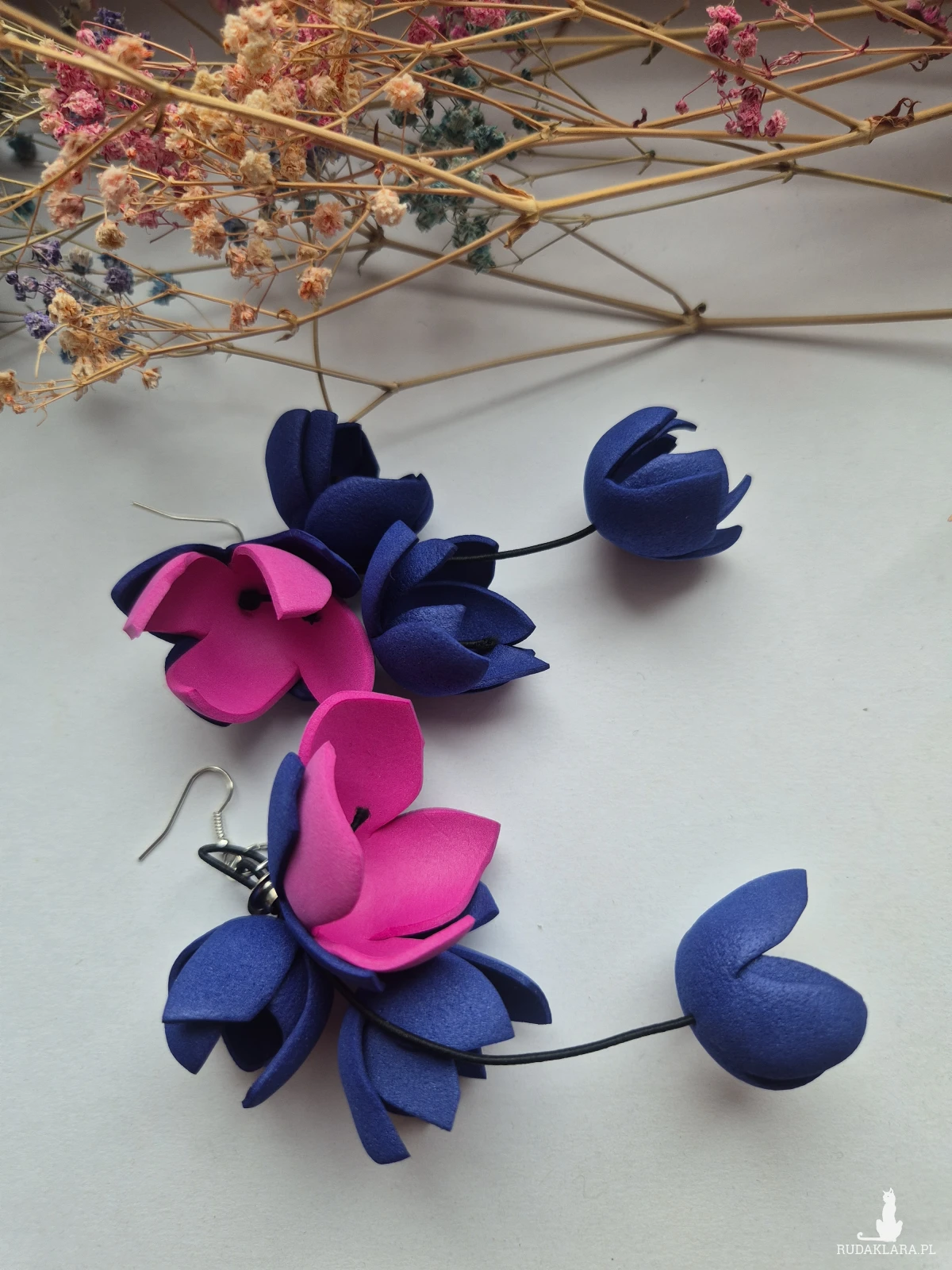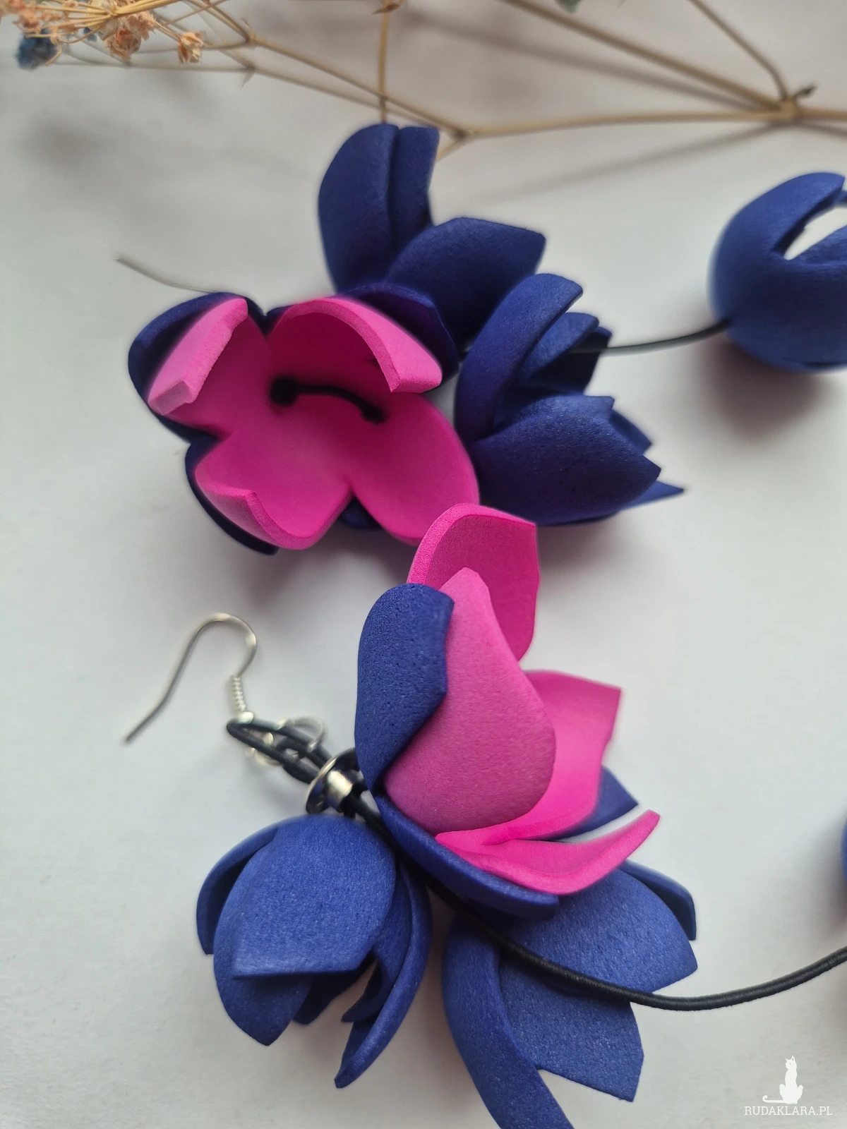 Kolczyki kwiatowe Amarant z granatem długie leciutkie polecam