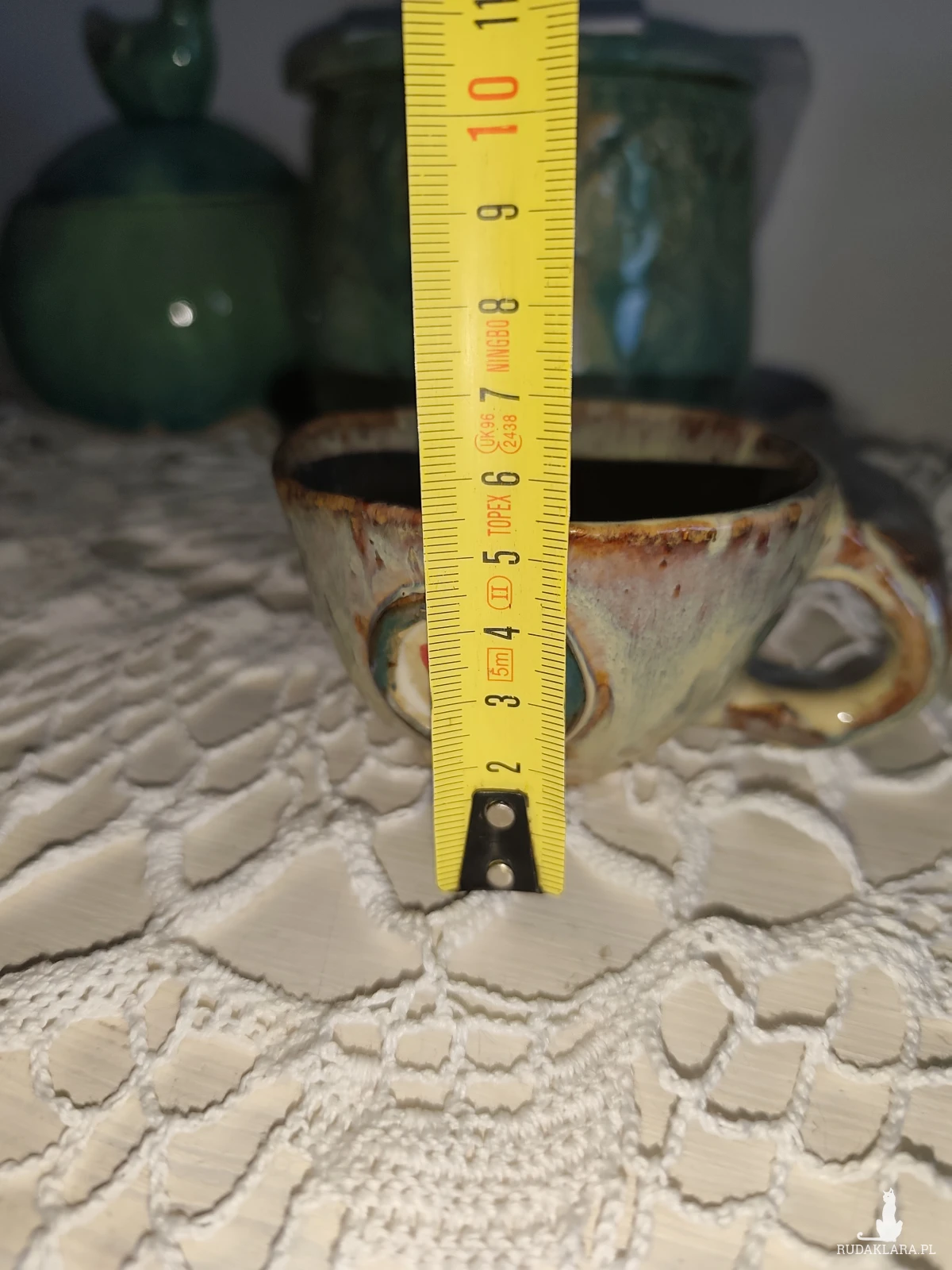 Kubek ceramiczny wykonany ręcznie, szkliwiony i dwukrotnie wypalany w piecu ceramicznym. Pojemność około do 150 ml. Polecam