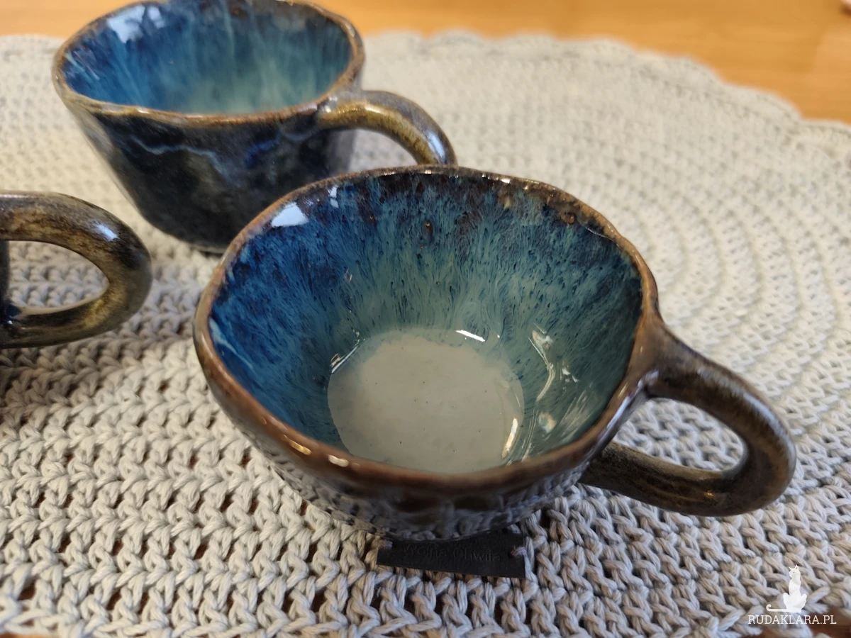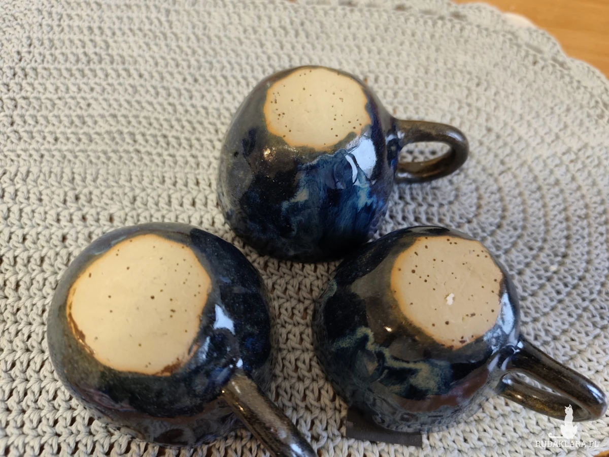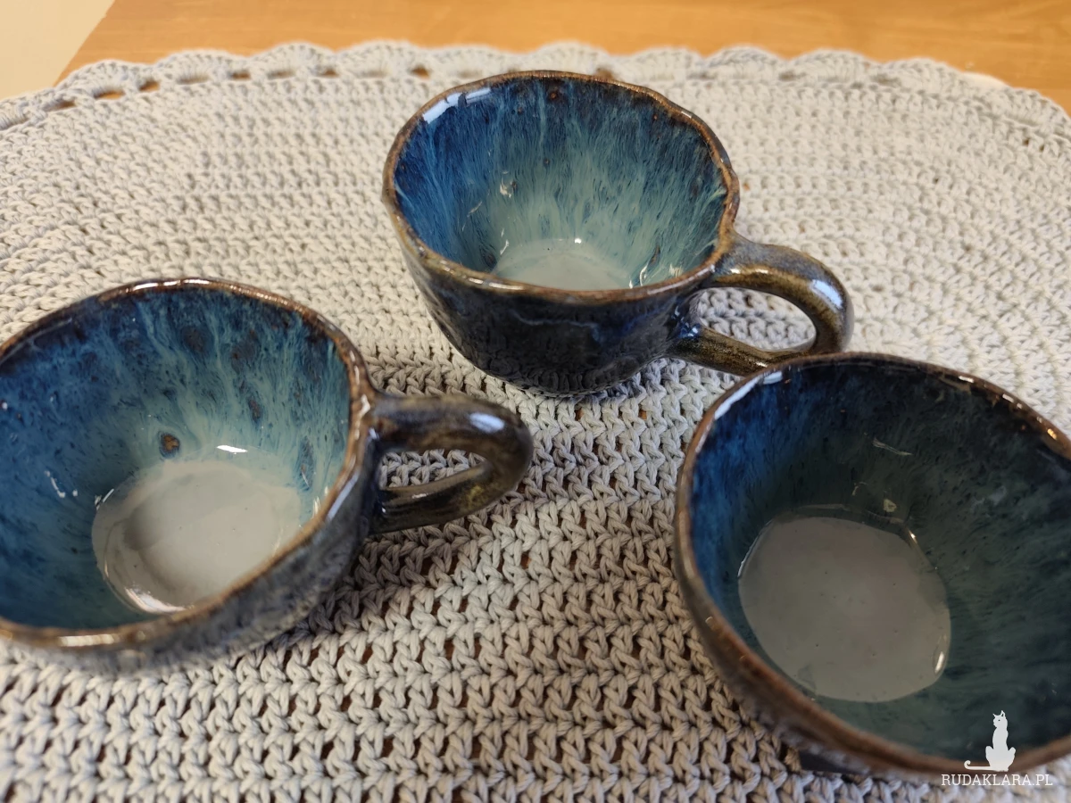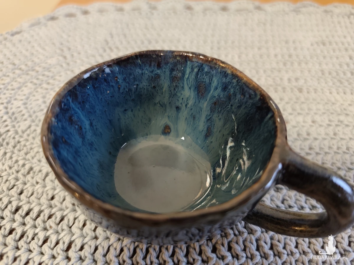 Kubek ceramiczny, na kawkę lub herbatkę, wykonany ręcznie, szkliwiony szkliwem dostosowanym do przeznaczenia. Pojemność około 100ml. Cena za sztukę, posiadam 3 szt.