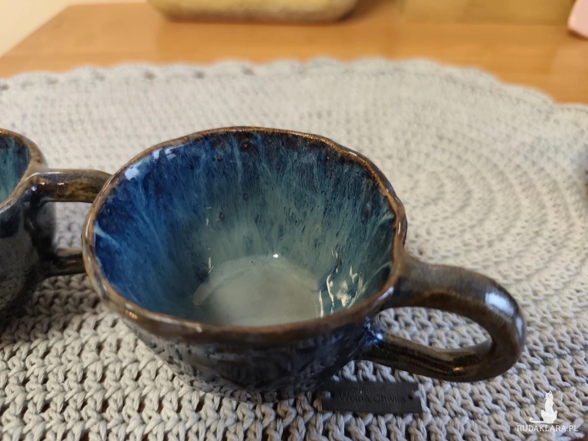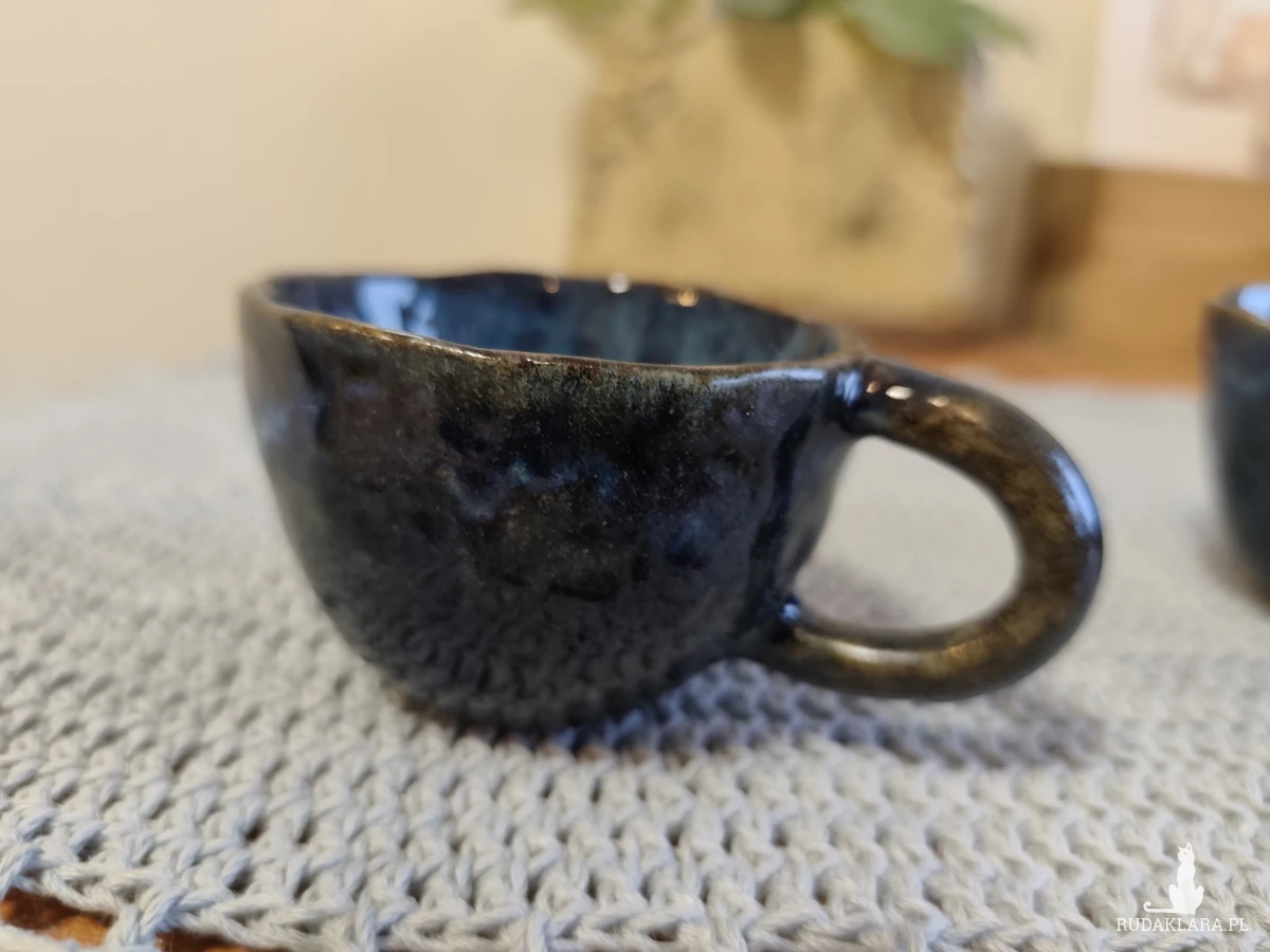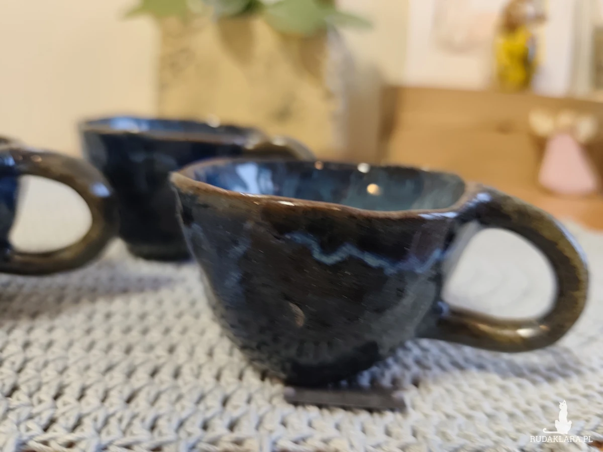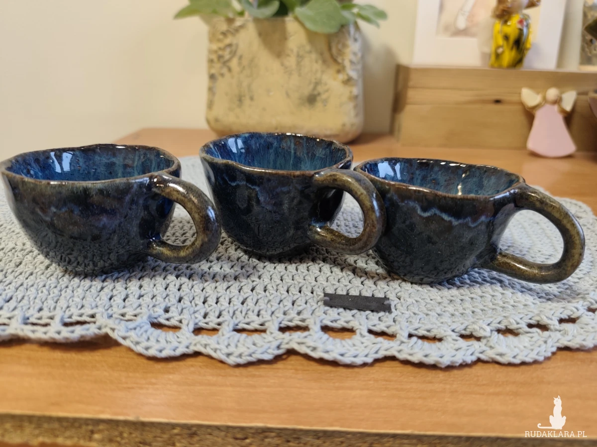 Kubek ceramiczny, na kawkę lub herbatkę, wykonany ręcznie, szkliwiony szkliwem dostosowanym do przeznaczenia. Pojemność około 100ml. Cena za sztukę, posiadam 3 szt.