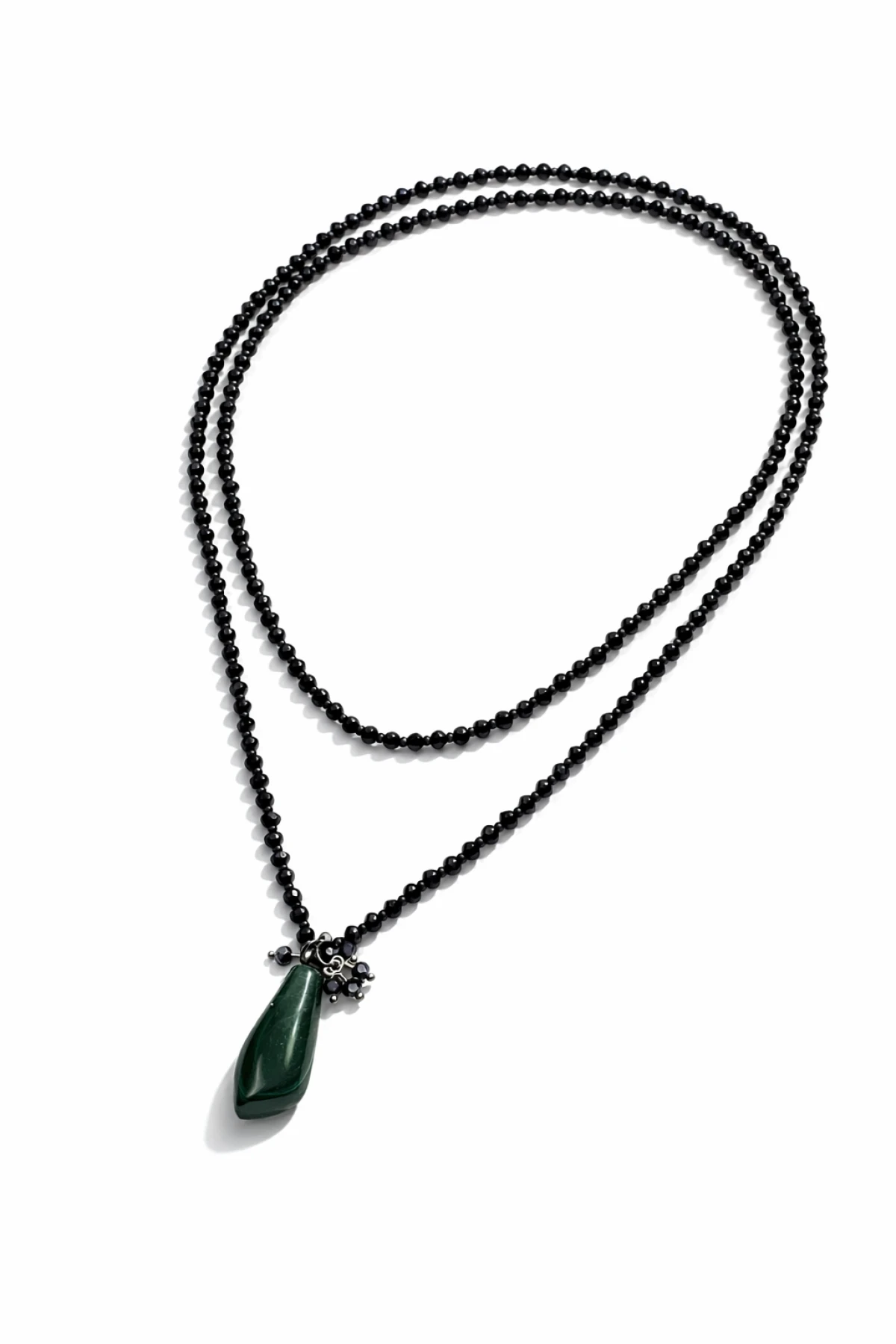 czarnych koralików szklanych oponek fasetowanych i wisiorka z bryłki