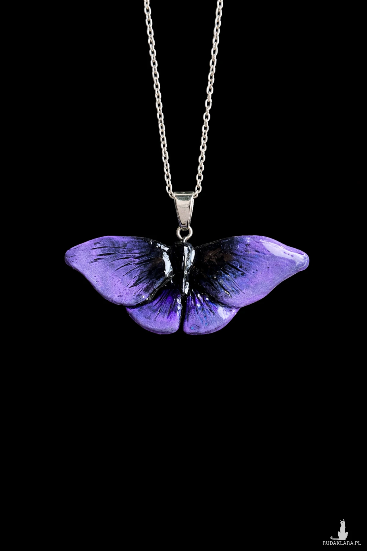 Postaw na dodatek, który zdefiniuje Twoją stylizację. Ten naszyjnik to połączenie surowej elegancji czarnego detalu z delikatnym fioletem skrzydeł motyla. Stworzony dla kobiet, które kochają unikatowe projekty.