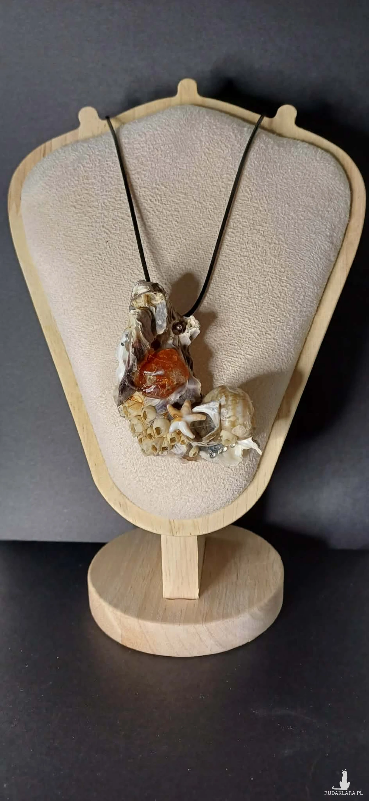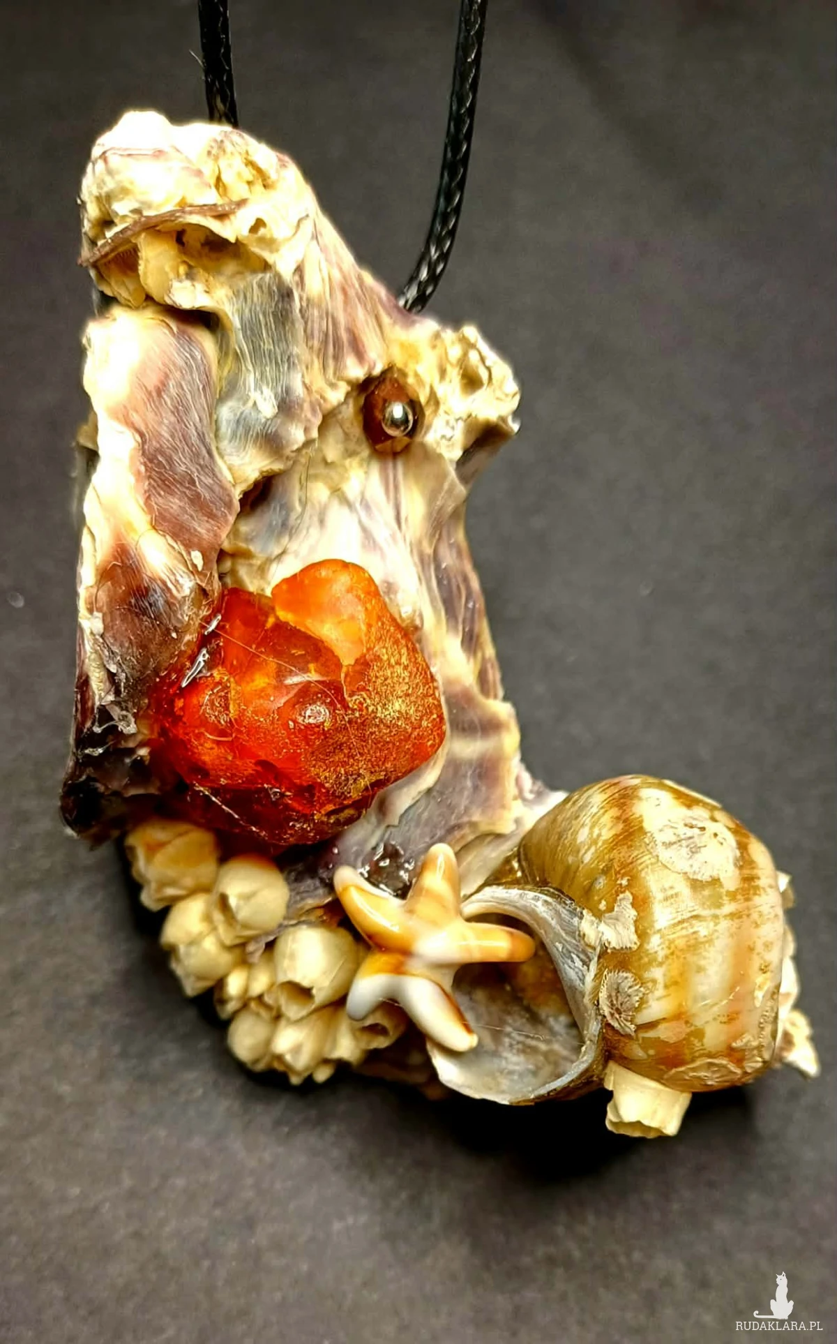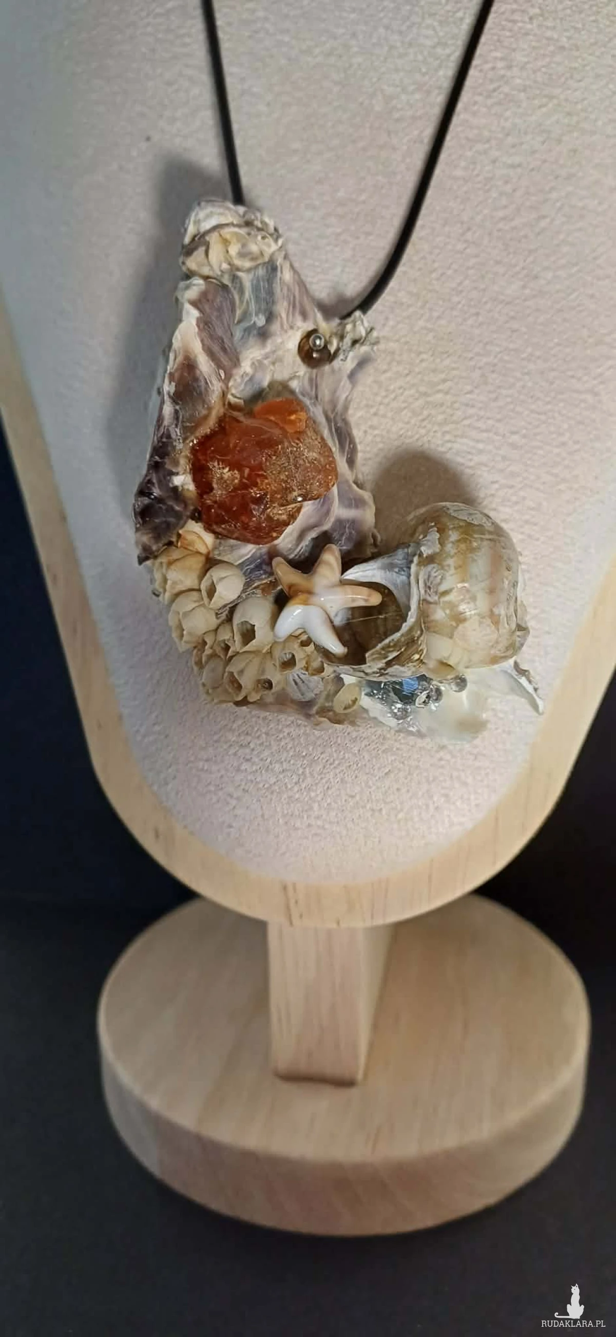 Dorzuciłam piękny kawałek bursztynu - kamienia szczęścia i życia - kryształki i malenką rozgwiazdę.