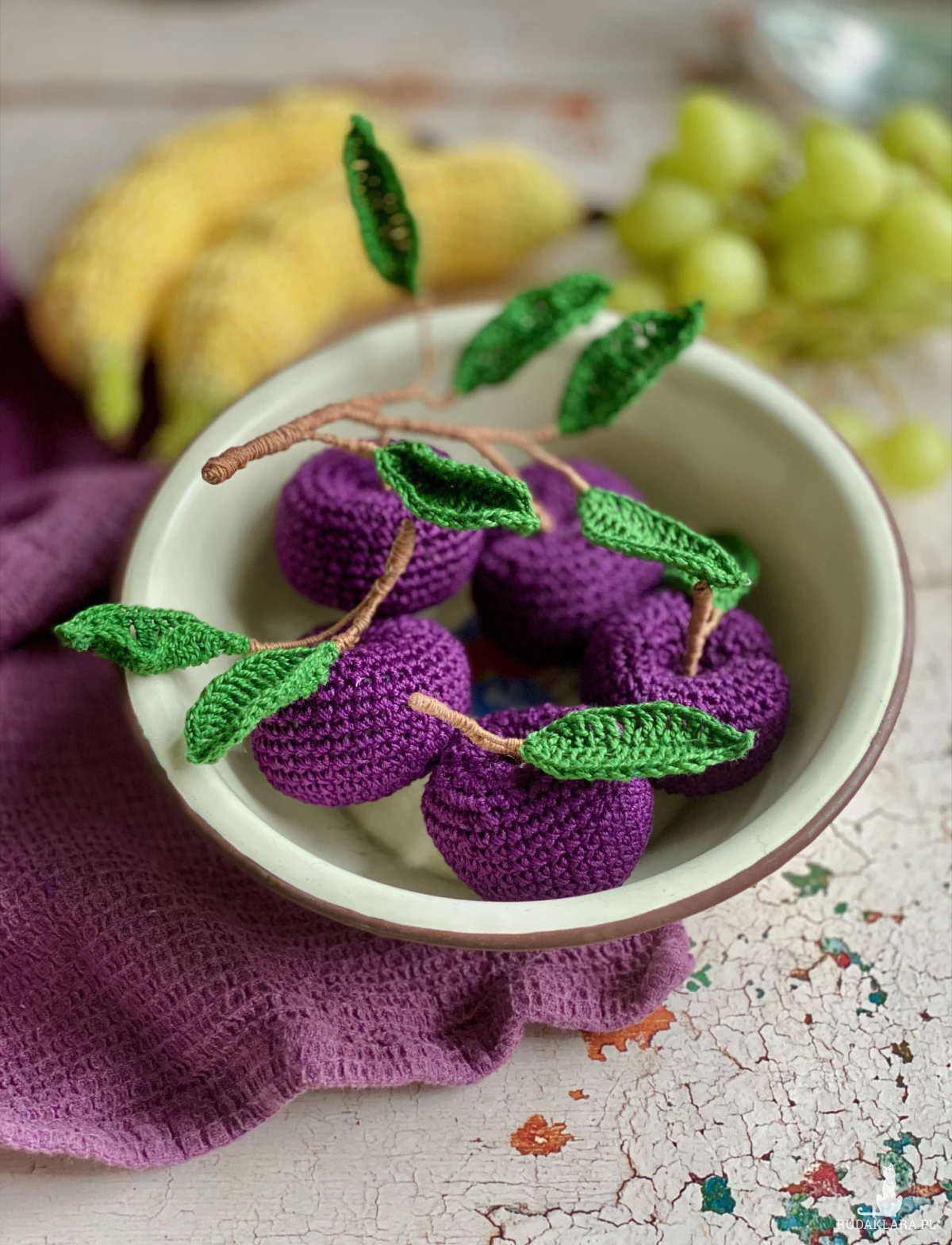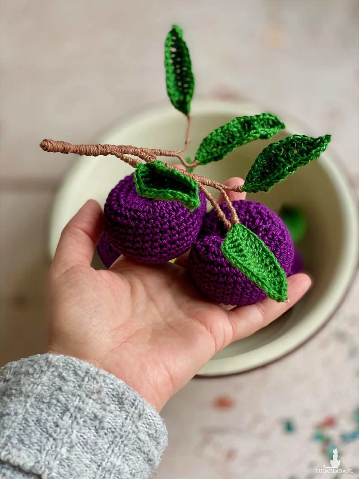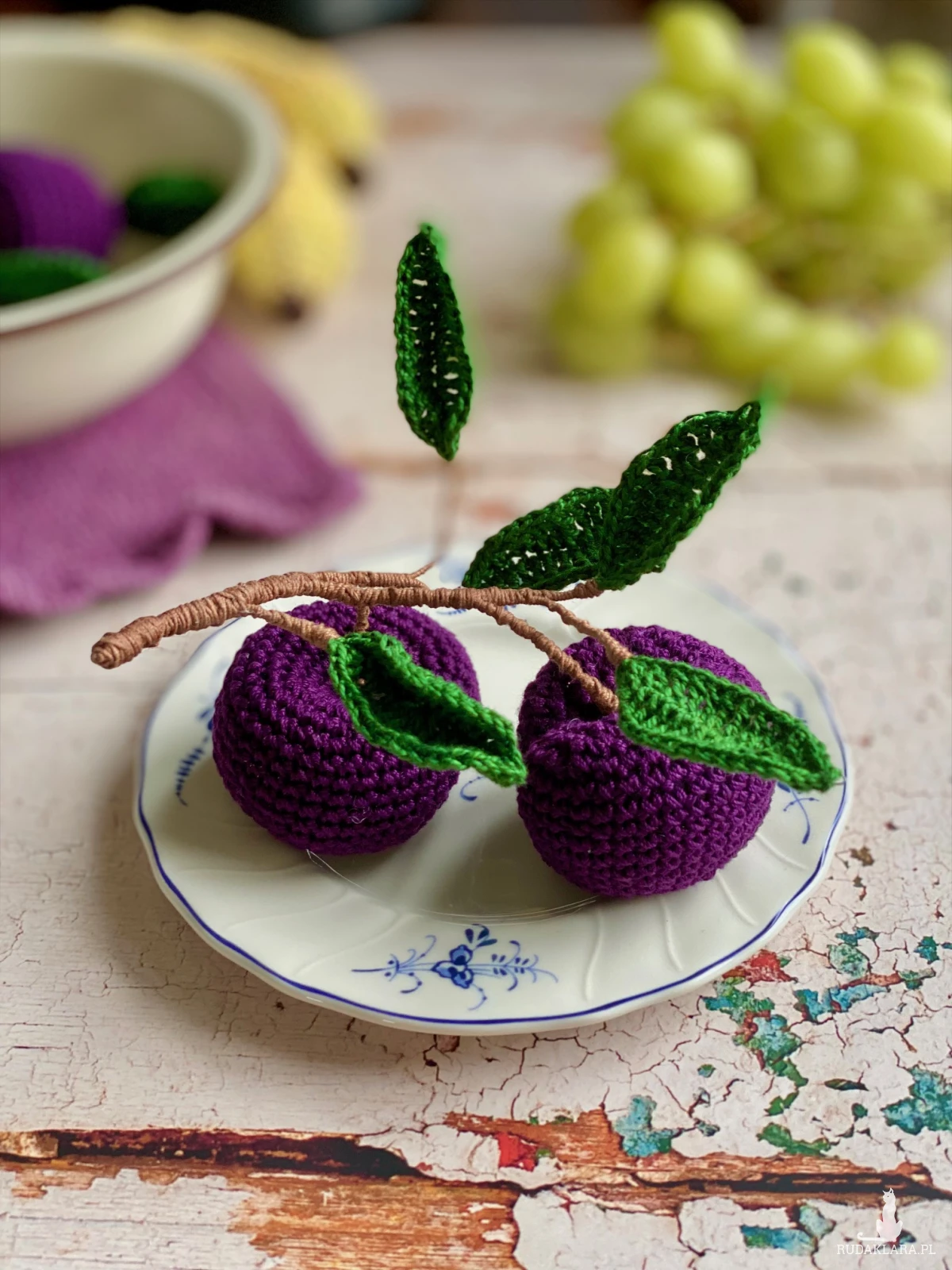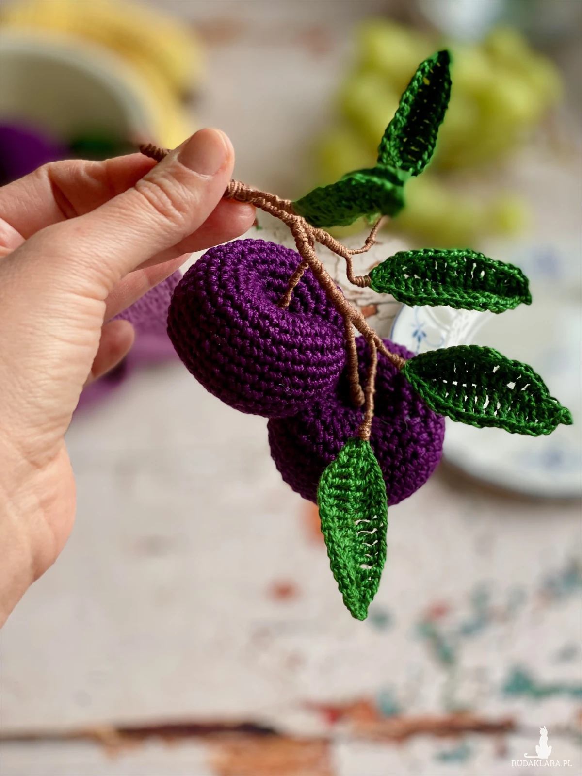 Szydełkowe śliwki – ręcznie robiona dekoracja