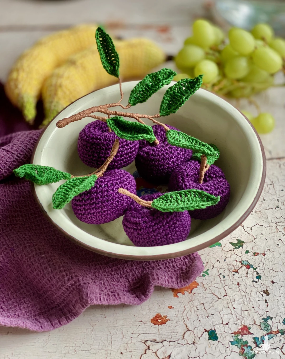 Szydełkowe śliwki – ręcznie robiona dekoracja