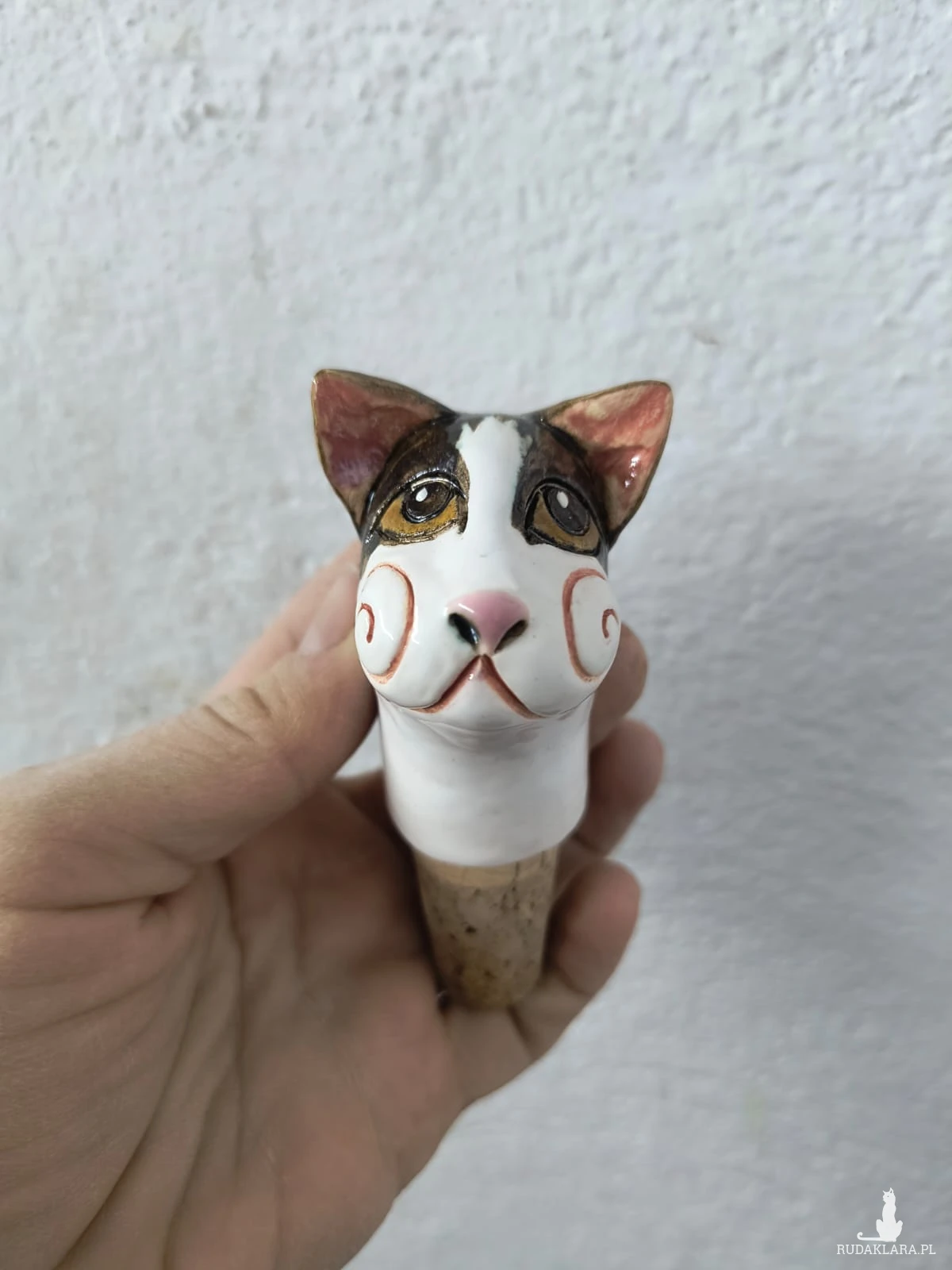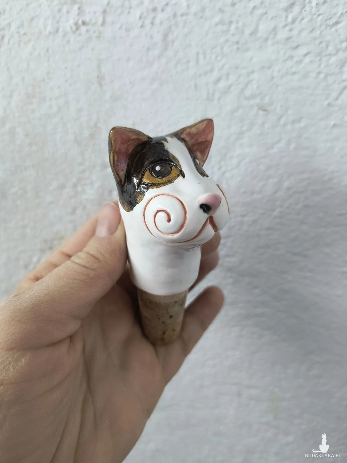 Korek do wina z nasadką z ceramiki w postaci szarego kota W stylu vintage. Wymiary ok 5 x 7,5 cm. Serdecznie polecam jako miły upominek dla bliskiej sercu osoby. Układ kolorów może nieznacznie się różnić od tego na zdjęciu.