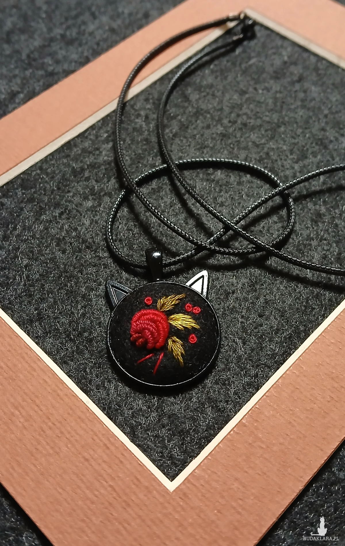 Mroczny klimat czerni i czerwieni zawsze przyciąga uwagę i dodaje wyjątkowego charakteru, a głowa kota - tajemniczości. Jeśli więc jesteś kobietą do której należy cały świat - ten wisior jest właśnie dla Ciebie.