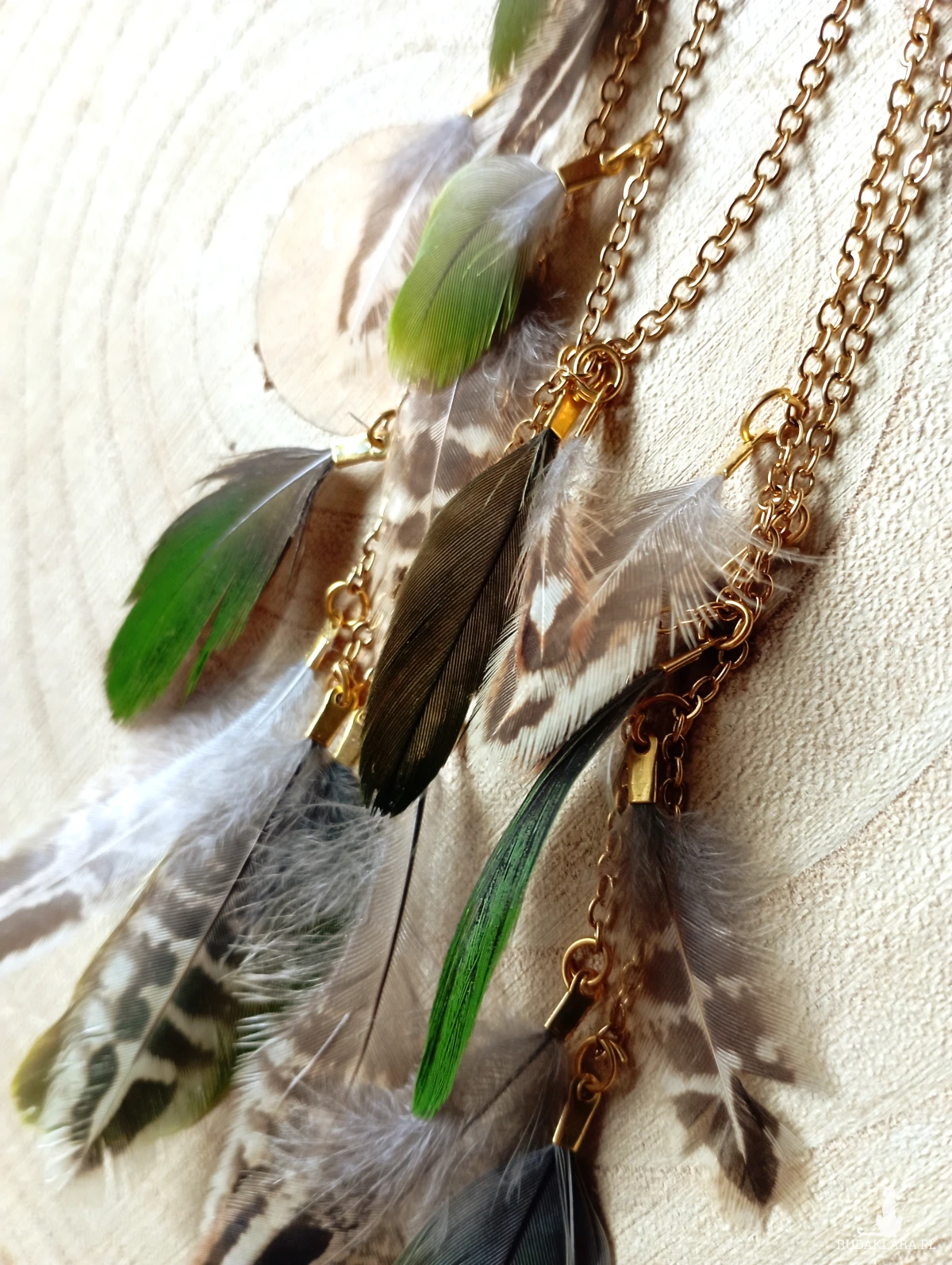 Pióra mogą być łatwopalne, wywoływać alergię u osób uczulonych, biżuteria zawiera drobne elementy i nie jest zabawką, produkt nieodpowiedni dla dzieci poniżej 3 roku życia.