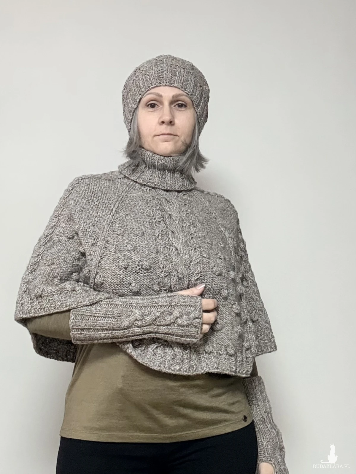 Piękny nietuzinkowy komplet na chłodne,jesienne i wiosenne wieczory, wykonany z przędzy o składzie 25%welna, 75% akryl, miękki, niegryzący, można nosić razem lub łączyć elementy z innymi stylizacjami,co z pewnością wzbogaci garderobę każdej kobiety,która chce mieć w swojej szafie coś unikatowego. Polecam!
