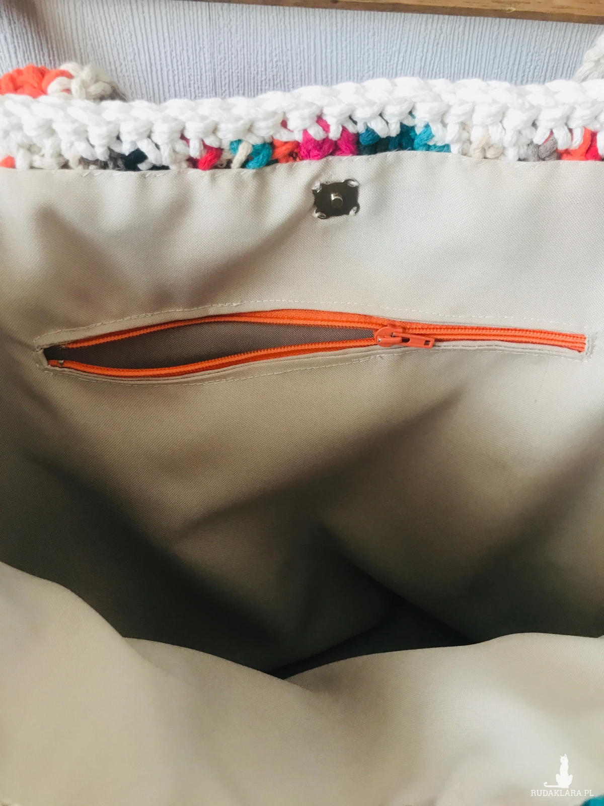 Wnętrze kryje praktyczną kieszeń zapinaną na zamek błyskawiczny, idealną na najważniejsze drobiazgi, a całość zamykana jest na wygodny magnes. To wyjątkowy, pojemny dodatek dla osób, które cenią jakość, ręczną pracę i odpowiedzialną modę.