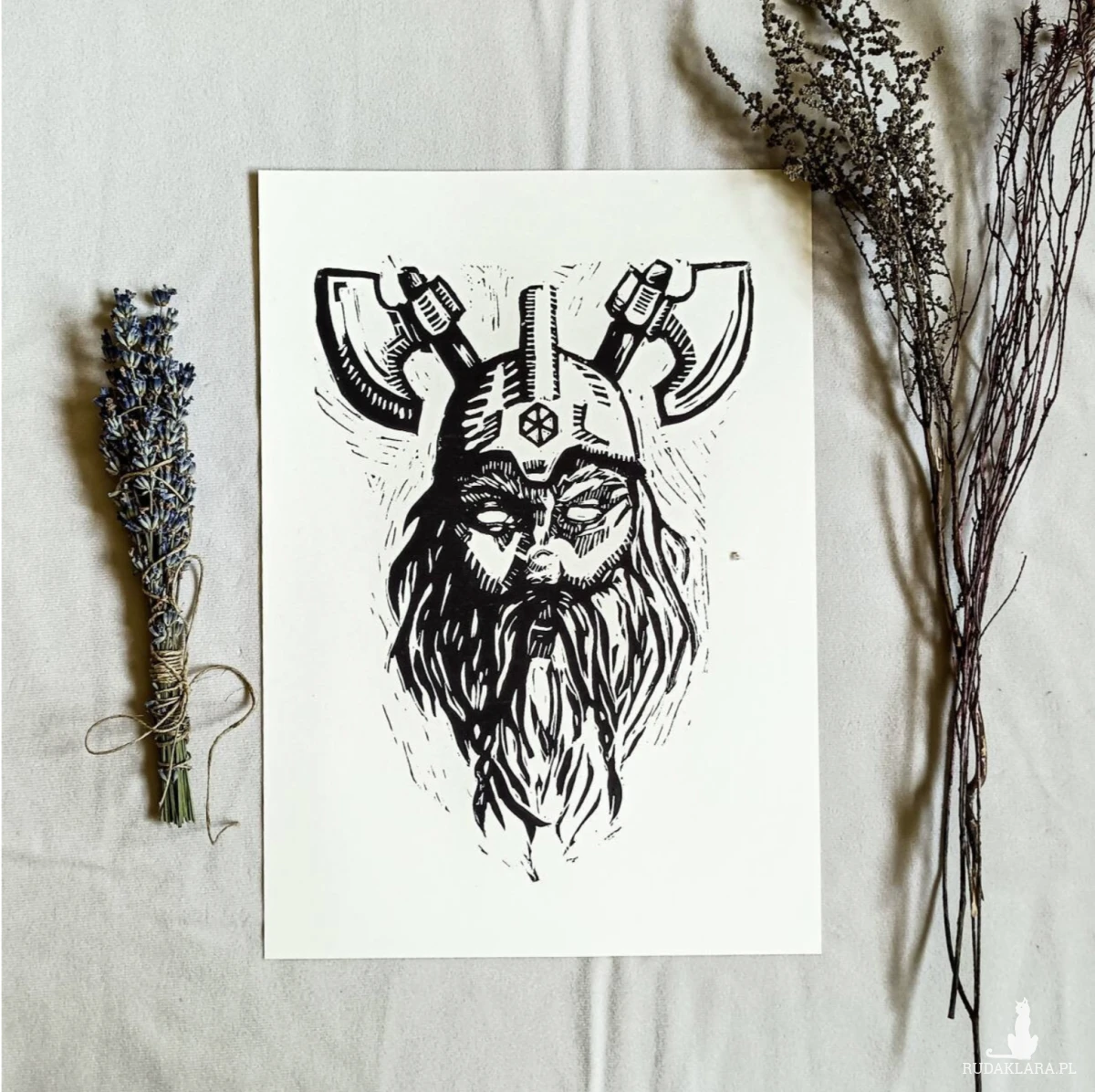Linoryt został wykonany tradycyjną techniką druku wypukłego, co nadaje grafice wyraźną fakturę, głębię i niepowtarzalny charakter. Każda odbitka jest ręcznie tworzona, dzięki czemu różni się subtelnymi detalami i jest unikatowym dziełem artystycznym.
