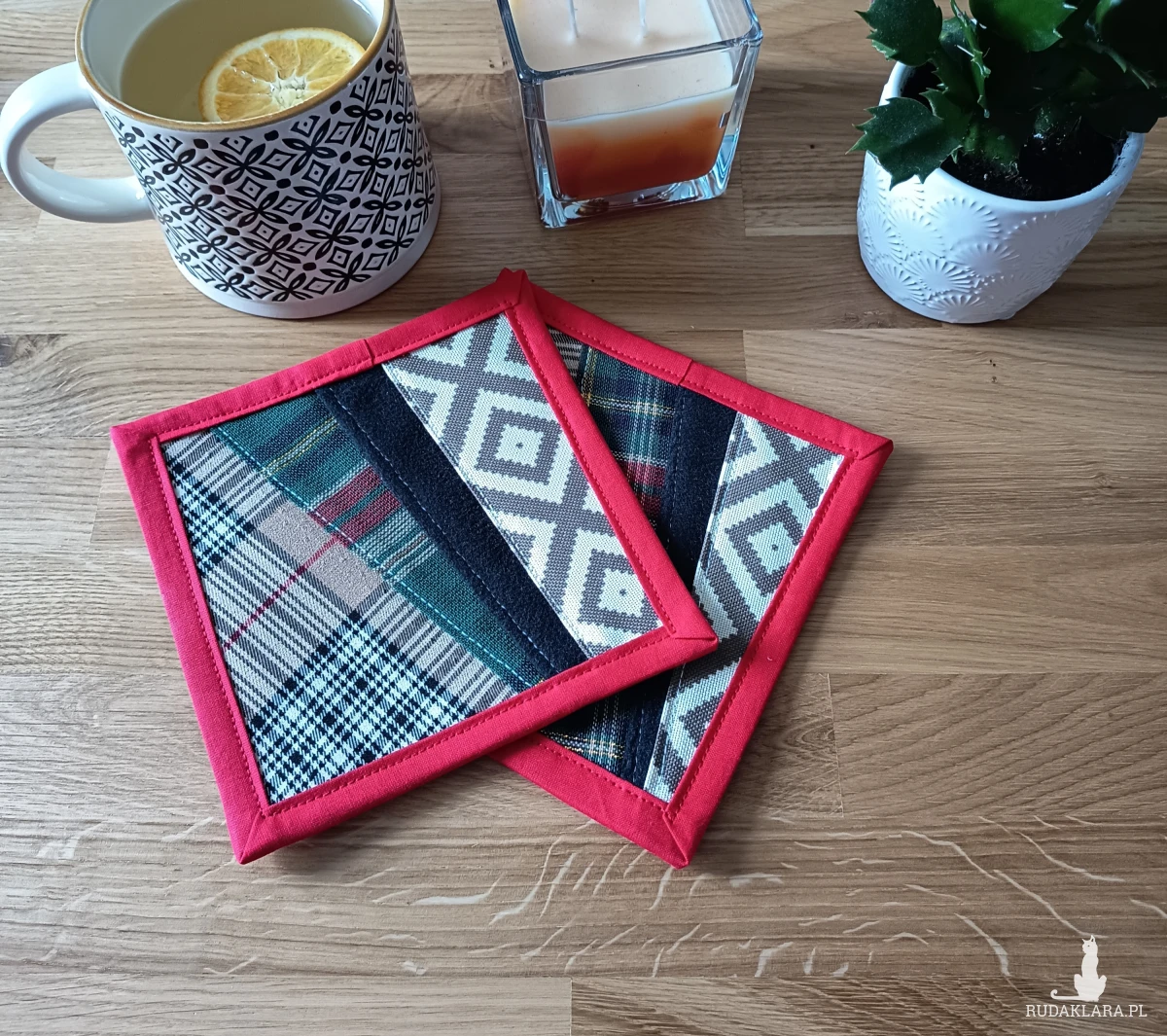 Ręcznie robione podkładki pod kubek – paczworkowe.