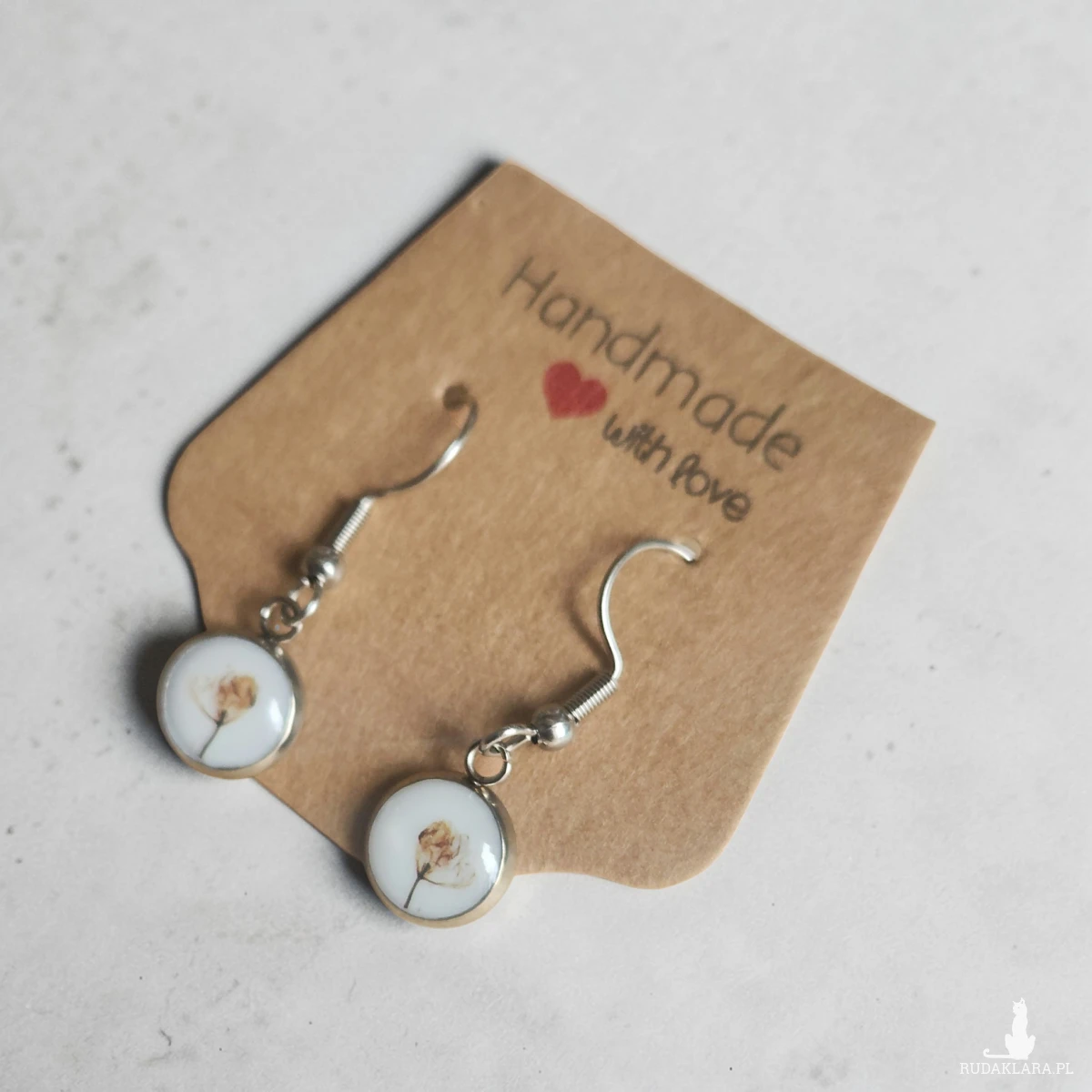 Kolczyki wiszące: Subtelne, okrągłe elementy z motywem drobnych kwiatuszków na białym tle.