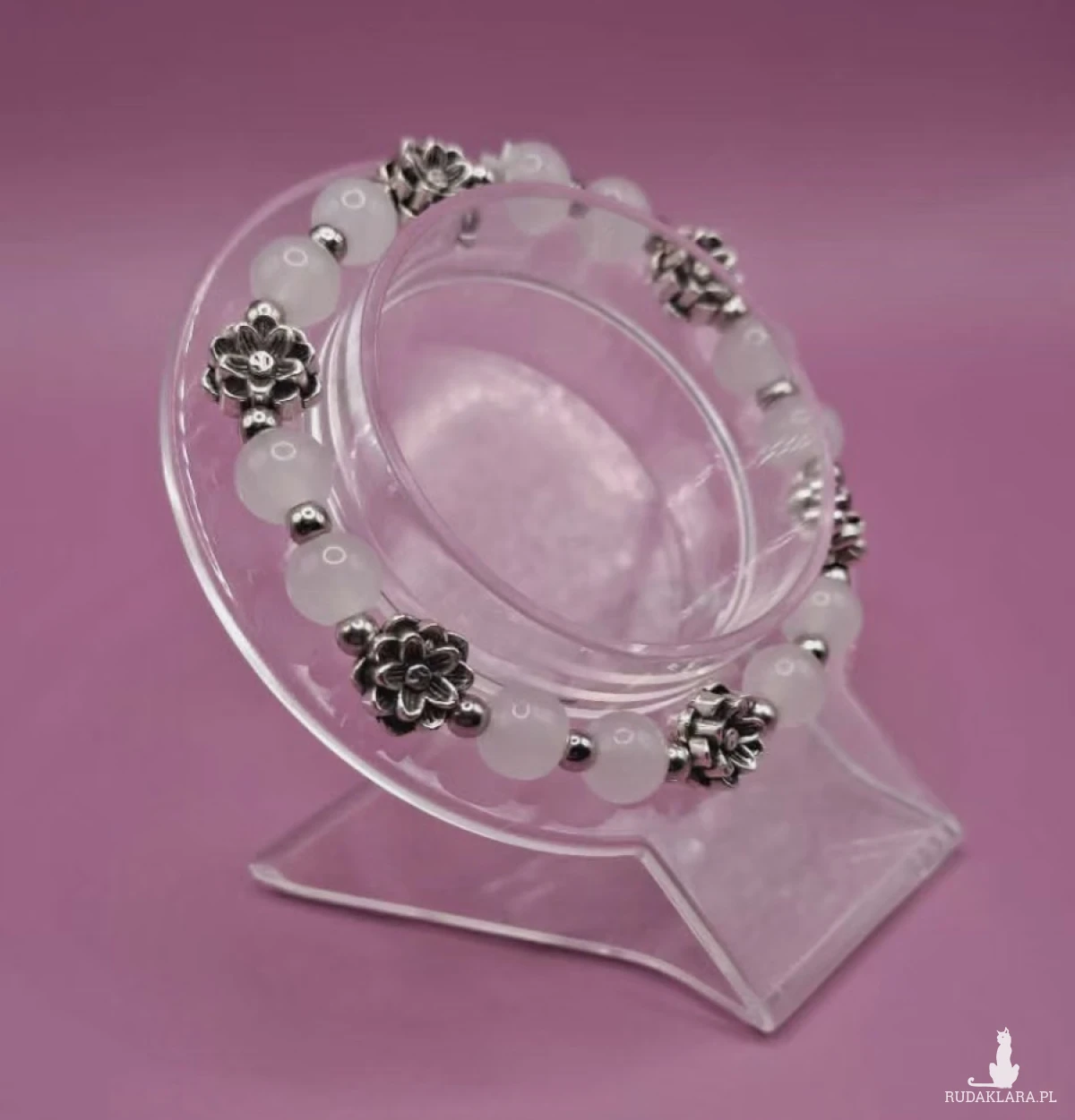 Konstrukcja: Bransoletka na wytrzymałej, elastycznej gumce jubilerskiej, co zapewnia wygodę zakładania i dopasowanie do nadgarstka. ok.17cm