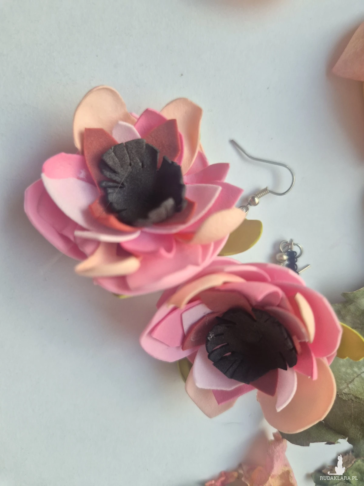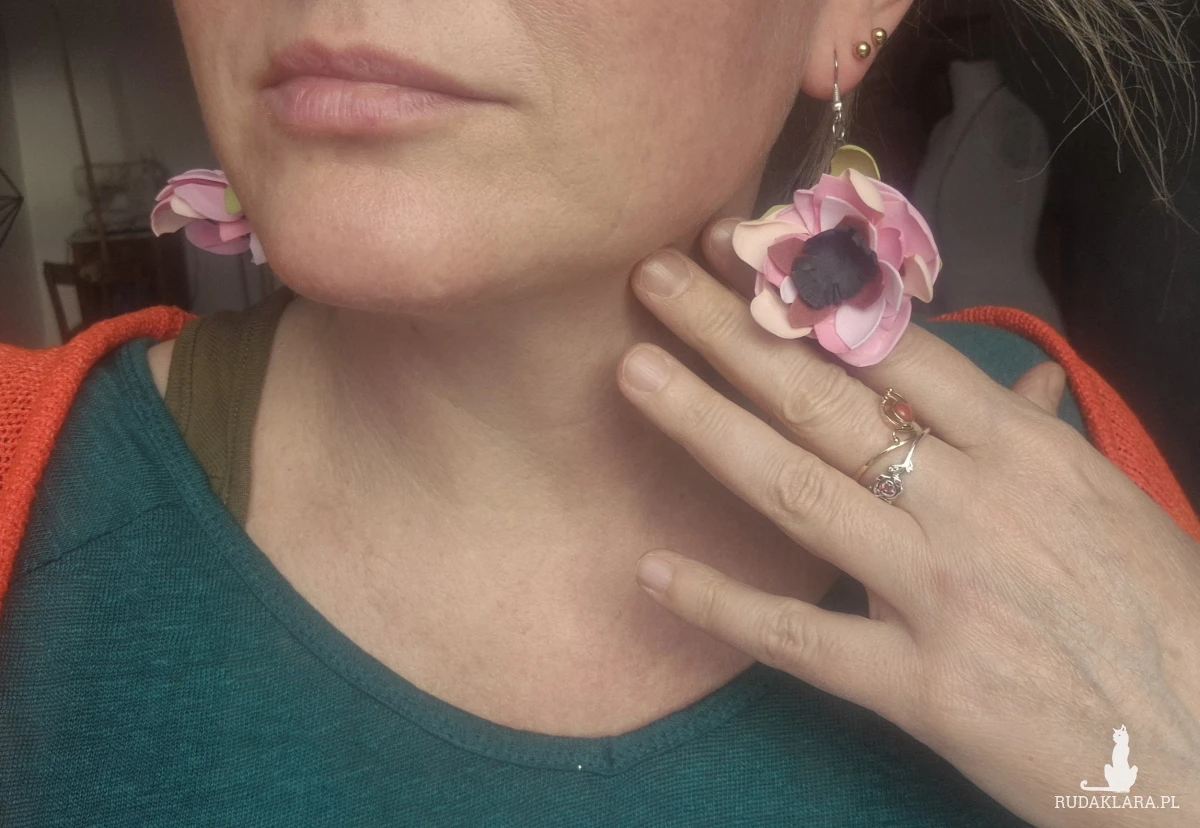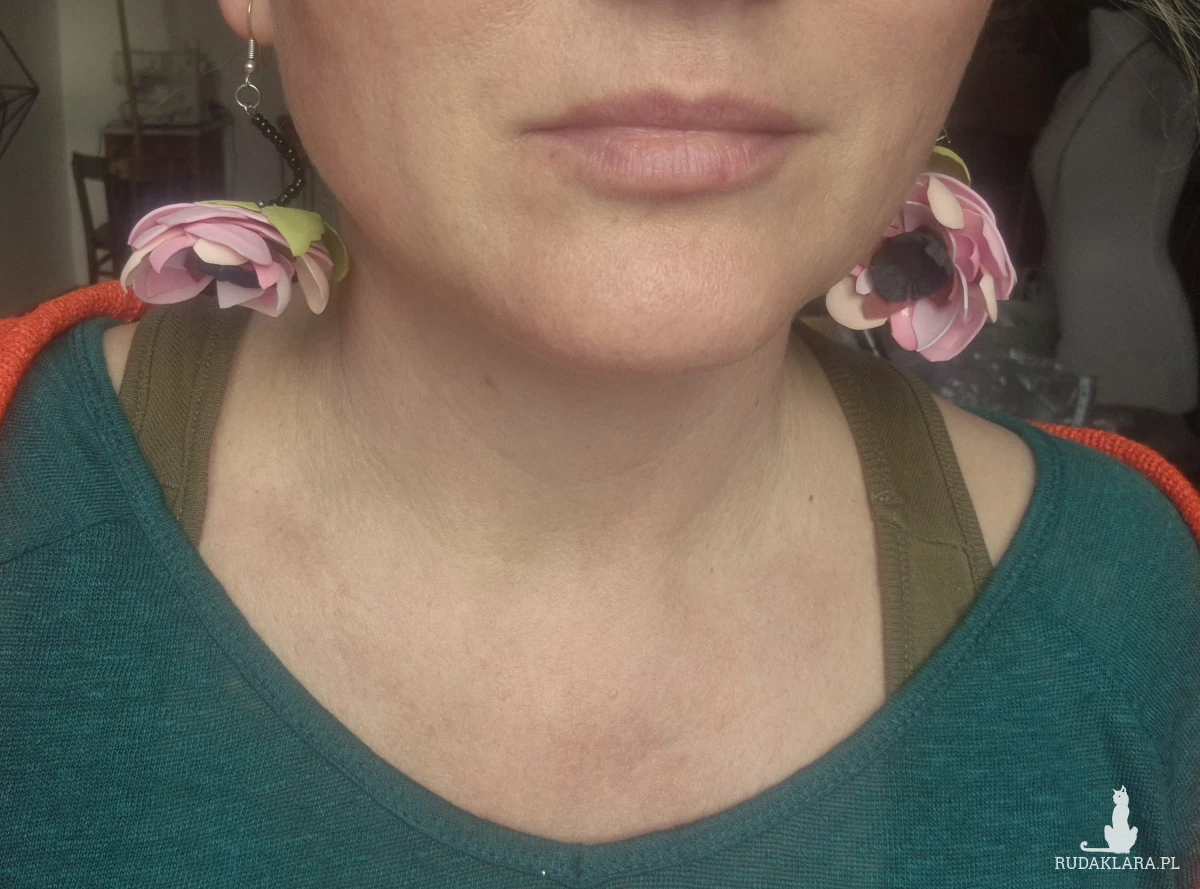 Kolczyki leciutkie kwiaty różowo zielone wykonane w pojedynczym egzemplarzu rękodzieło polecam