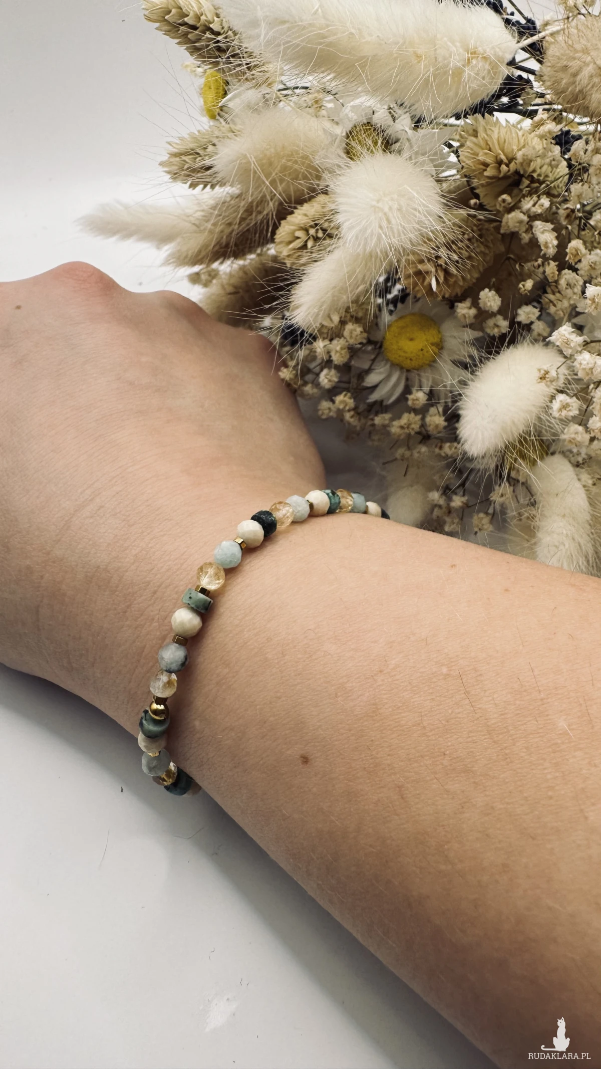Jest to produkt delikatny, przeznaczony do noszenia na ciele jako ozdoba. Używany niezgodnie z przeznaczeniem może ulec zniszczeniu. Nie zostawiaj w pobliżu dzieci ze względu na ryzyko połknięcia i zadławienia małymi elementami. Biżuteria jest wykonana z różnych materiałów, które mogą uczulać. Jeśli zauważysz jakiekolwiek objawy, od razu ściągnij biżuterię. Jeśli objawy będą się nasilać skonsultuj się z lekarzem. Ściągaj biżuterię do aktywności fizycznych oraz w sytuacjach gdzie możliwe jest zniszczenie biżuterii lub skaleczenie nią. Przechowuj w suchym miejscu. Najlepiej w pudełeczkach lub woreczkach do tego służących. Trzymaj z daleka od chemikaliów, kosmetyków. Nie rozciągaj, nie szarp, nie rzucaj biżuterią. Przy tego typu zachowaniach biżuteria może się rozciągnąć, urwać lub kamienie i koraliki mogą popękać. Jako producent biżuterii oświadczam, że wszelkie materiały użyte do jej wyrobu pochodzą z legalnych hurtowni zarejestrowanych na terenie Unii Europejskiej.