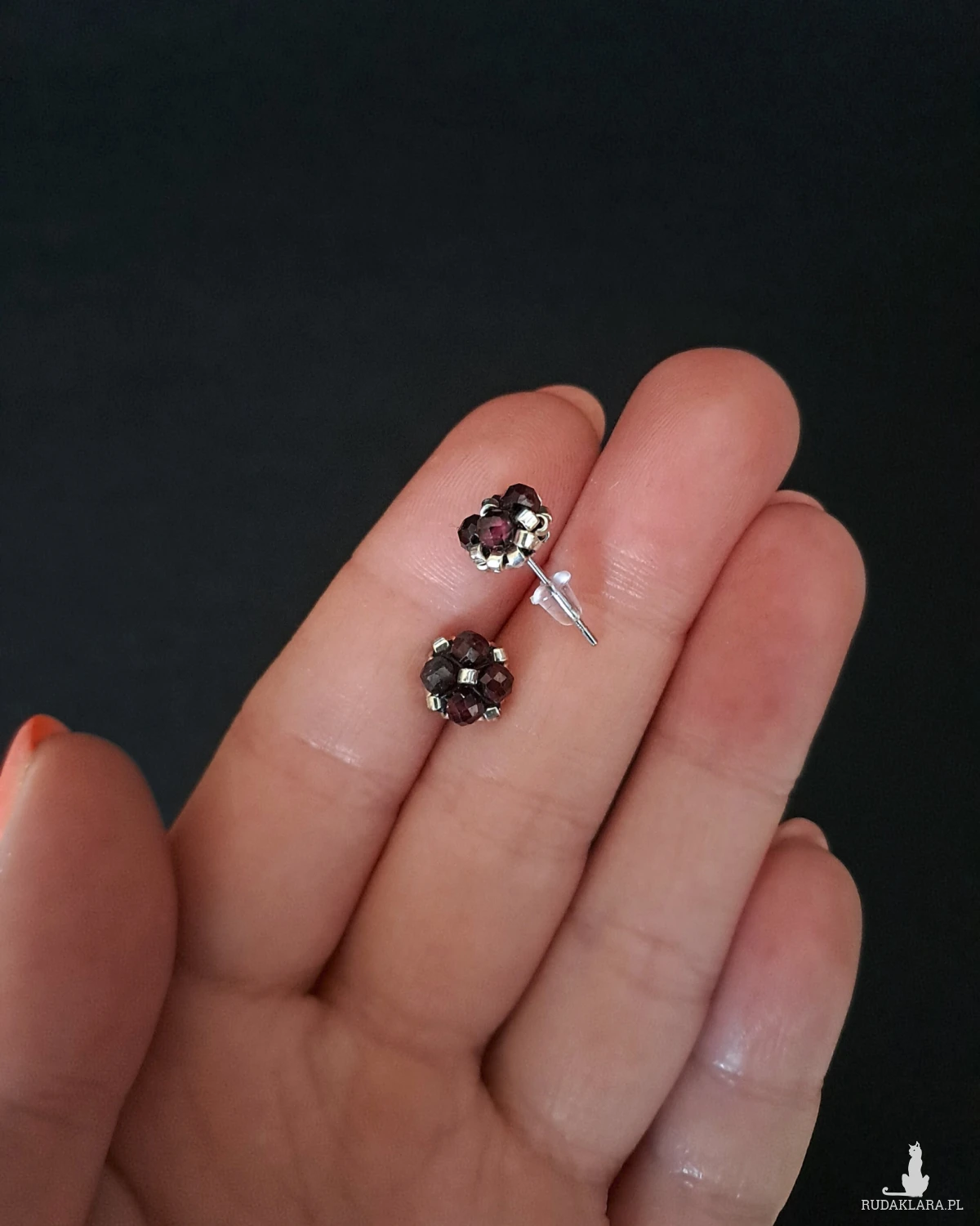 Delikatne Kolczyki Sztyfty - Granat