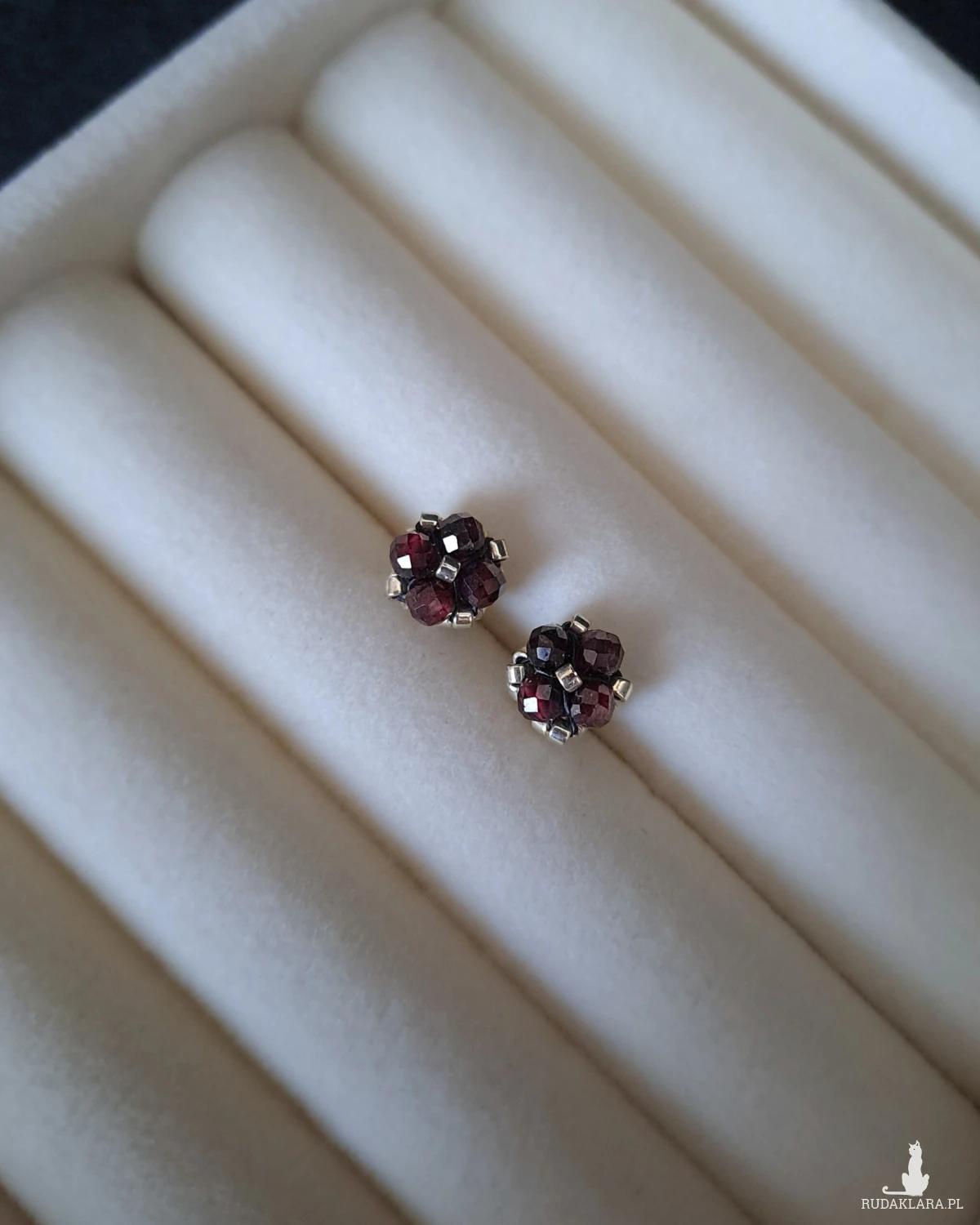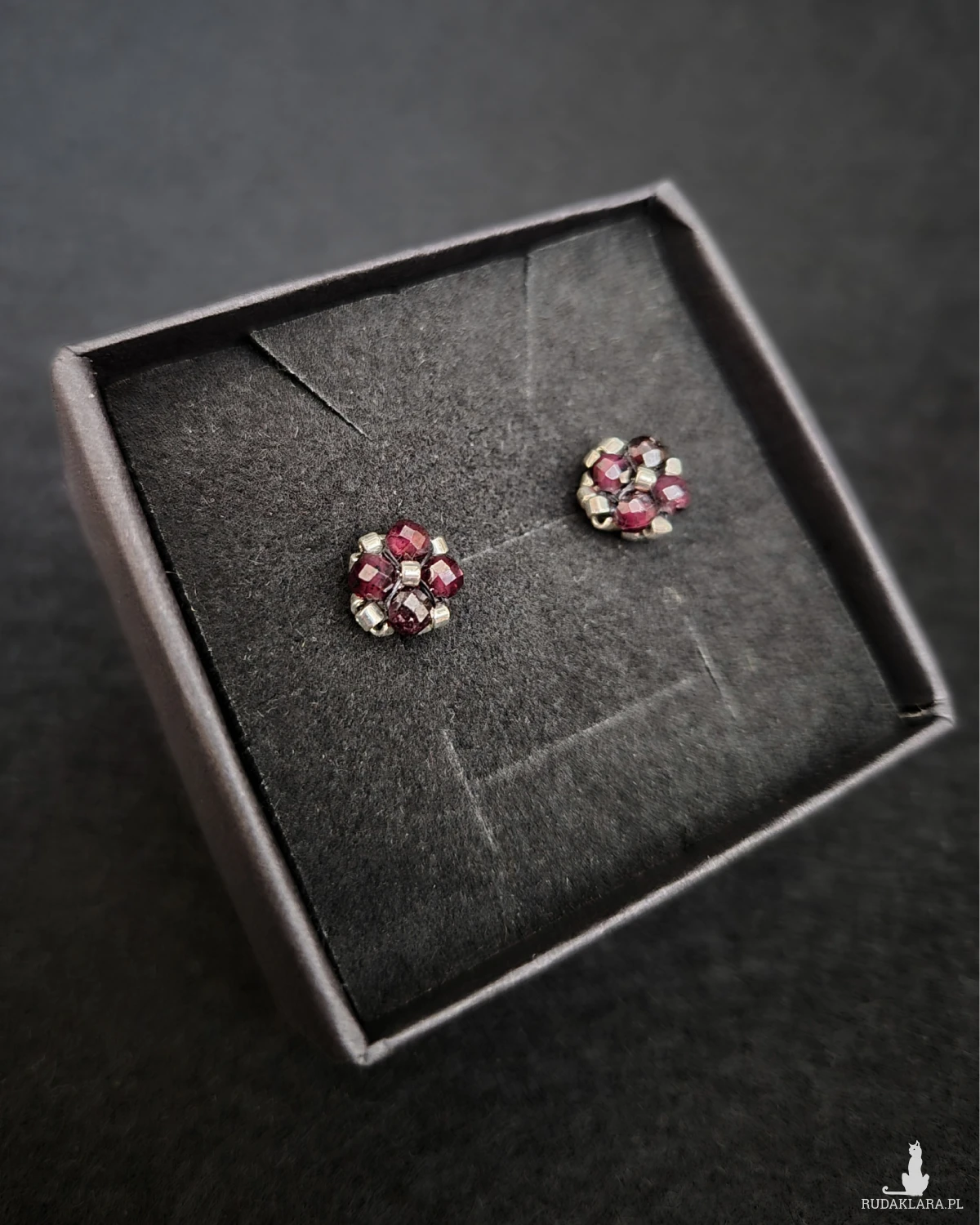 Głębokie, bordowo-wiśniowe sztyfty z granatem przyciągają spojrzenie swoją intensywną barwą i elegancką prostotą. Srebrne akcenty subtelnie rozświetlają kamień, podkreślając jego szlachetny charakter. Niewielki rozmiar sprawia, że kolczyki są wygodne i idealne na co dzień, a jednocześnie stanowią wyrazisty, kobiecy detal w każdej stylizacji.