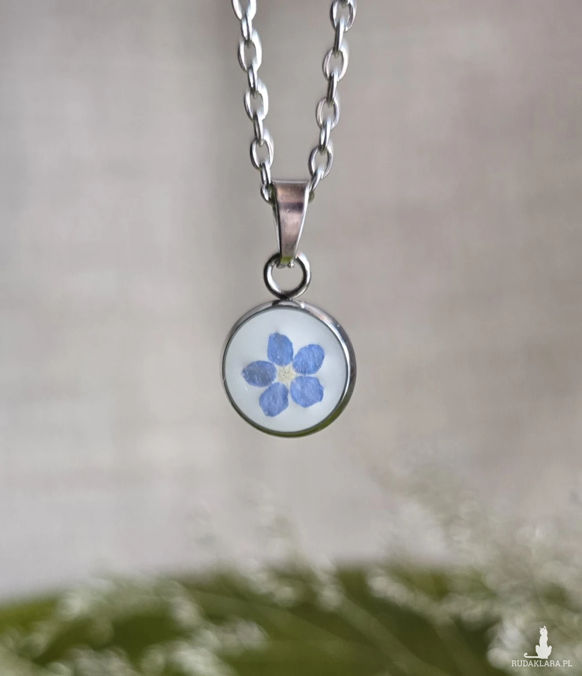 Oferuję Państwu unikalną biżuterię. Zawieszka jest wykonana z suszonych kwiatów i żywicy epoksydowej. Biżuteria jest wspaniałym i oryginalnym prezentem na lata.