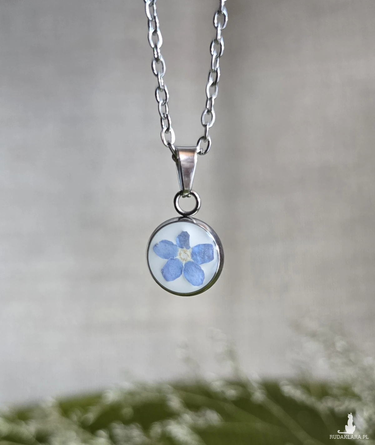 Oferuję Państwu unikalną biżuterię. Zawieszka jest wykonana z suszonych kwiatów i żywicy epoksydowej. Biżuteria jest wspaniałym i oryginalnym prezentem na lata.