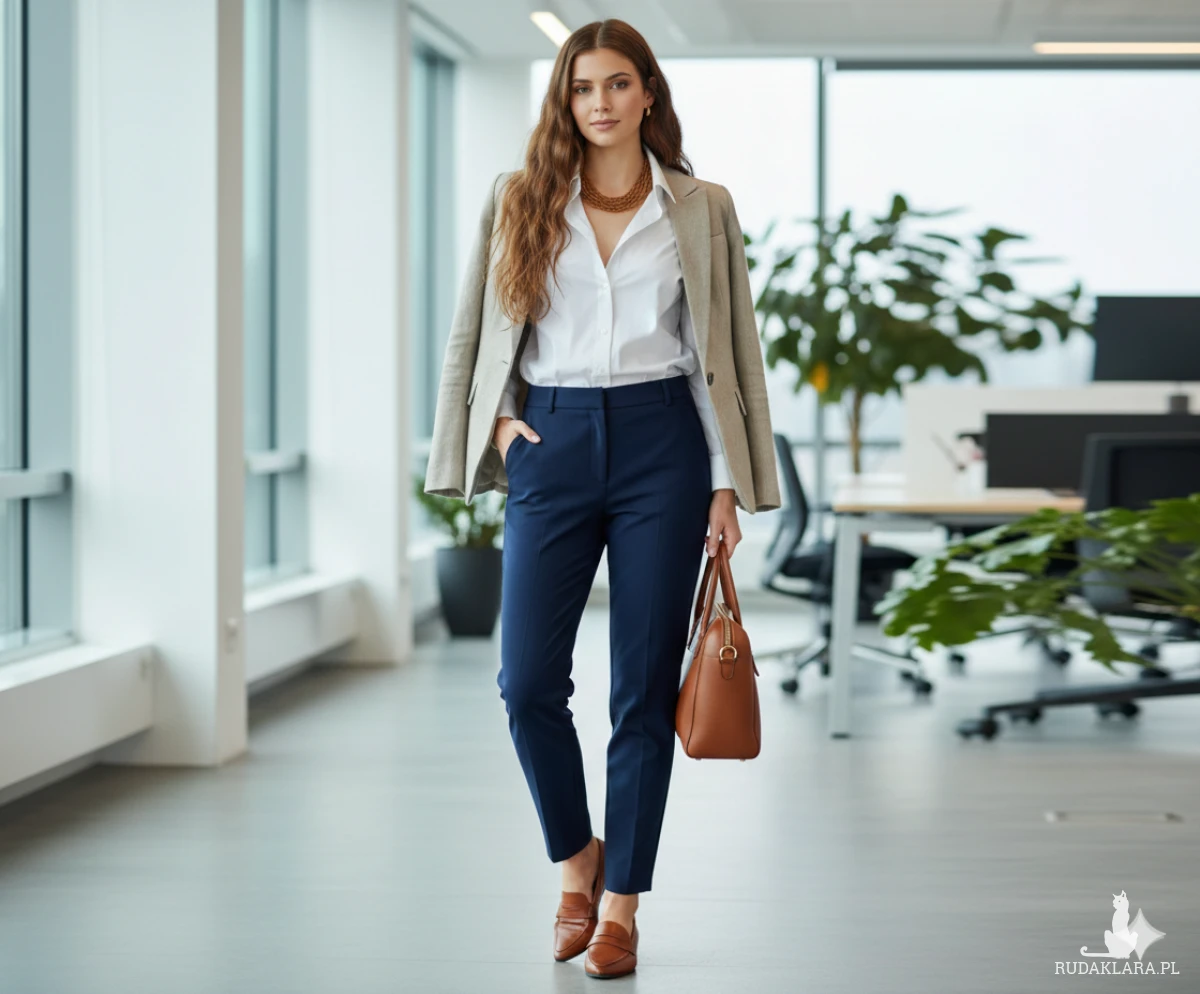 klasycznemu biurowemu mundurowi, nie odbierając mu profesjonalizmu.