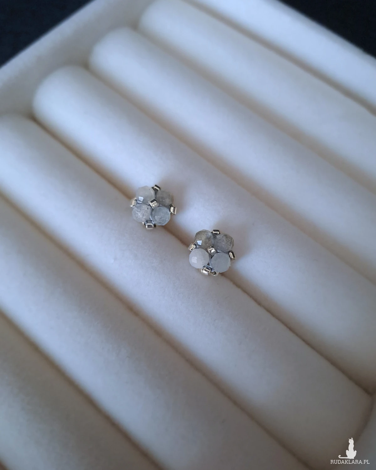 Subtelne sztyfty z labradorytem zachwycają tajemniczą grą światła i delikatnymi refleksami w odcieniach błękitu, szarości i złota. Srebrne koraliki pięknie podkreślają jego naturalny blask, tworząc elegancką, a zarazem minimalistyczną kompozycję. Niewielki rozmiar sprawia, że kolczyki są wygodne w codziennym noszeniu, a jednocześnie przyciągają spojrzenia swoim nieoczywistym urokiem.