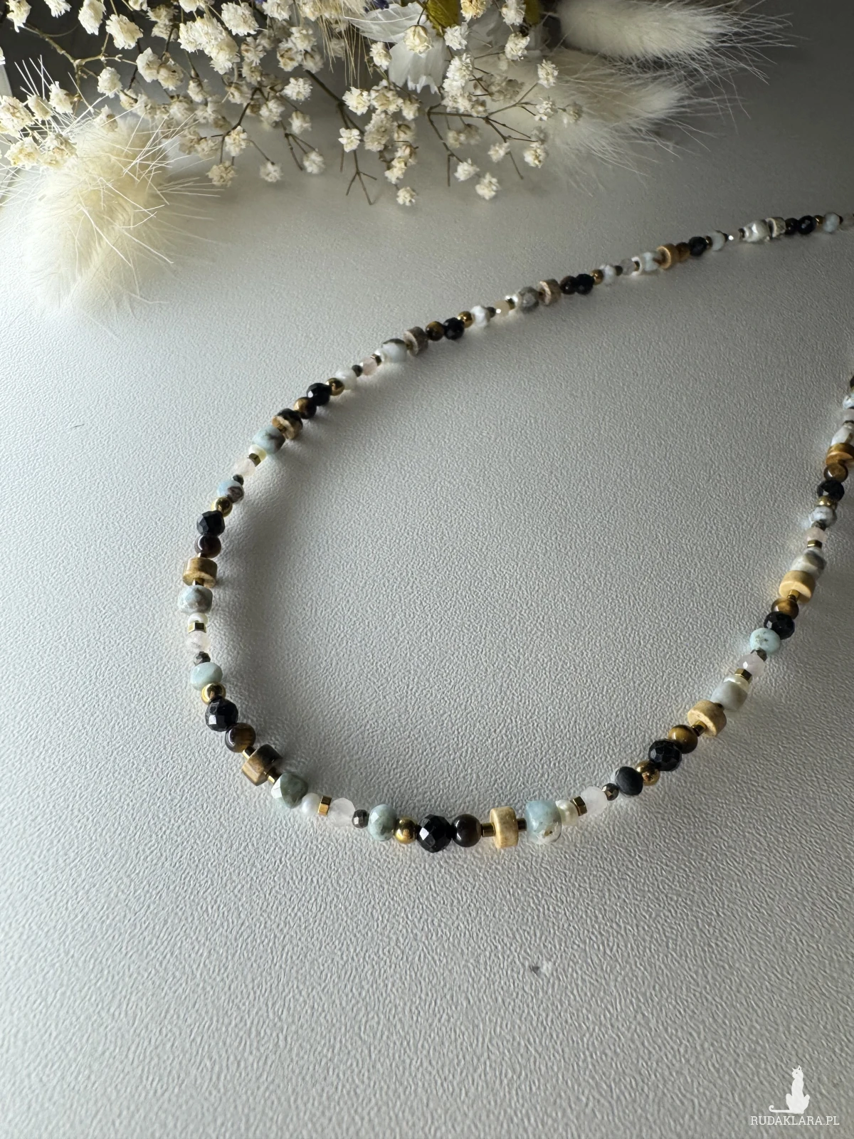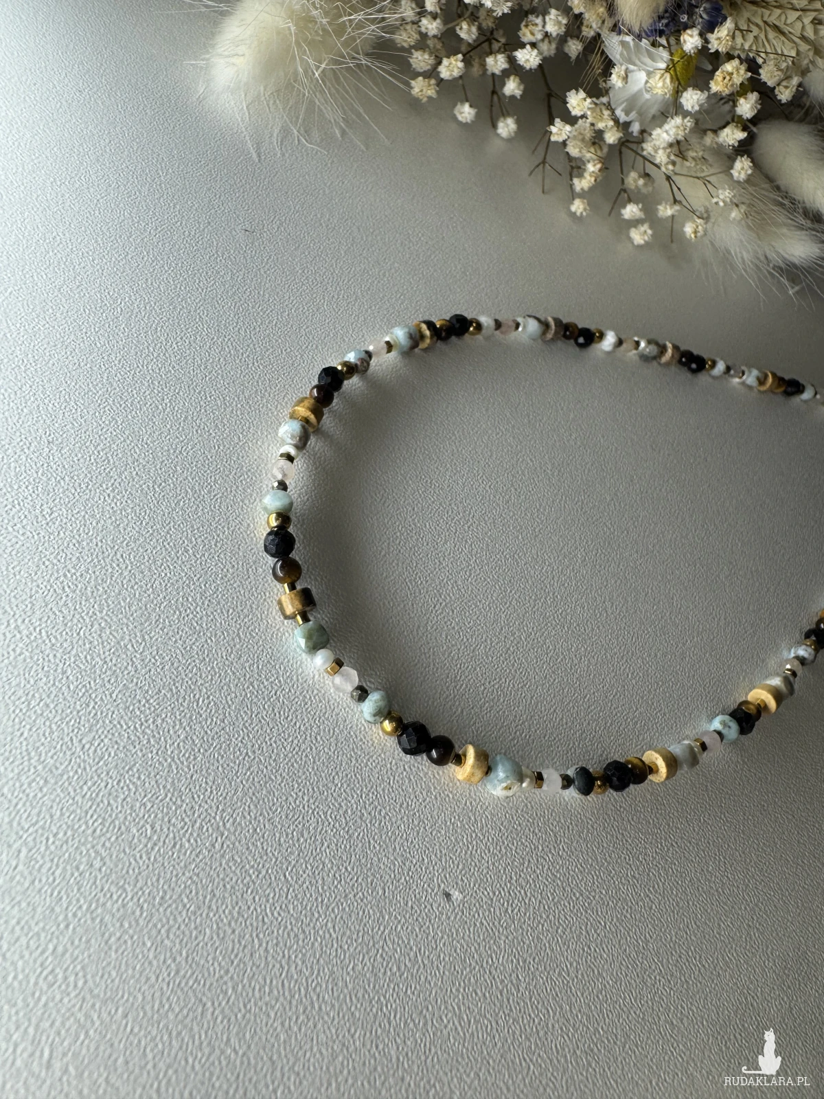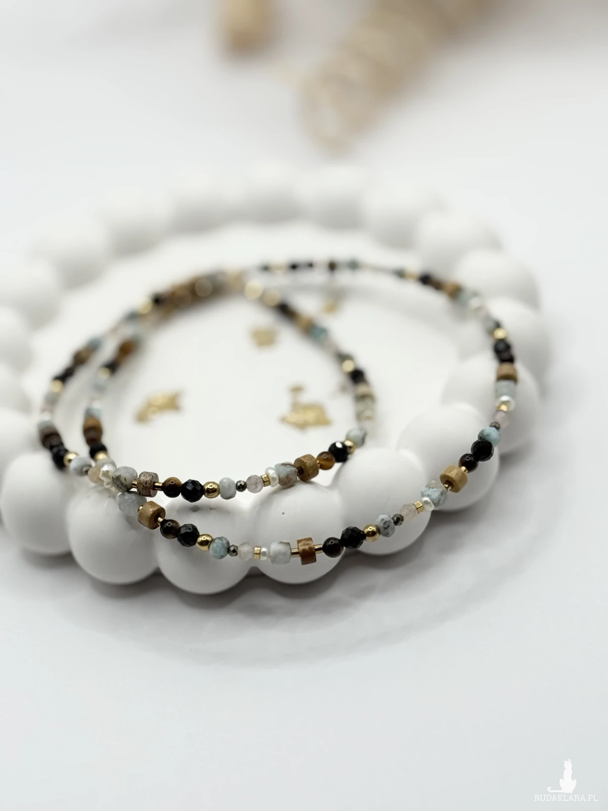 Jest to produkt delikatny, przeznaczony do noszenia na ciele jako ozdoba. Używany niezgodnie z przeznaczeniem może ulec zniszczeniu. Nie zostawiaj w pobliżu dzieci ze względu na ryzyko połknięcia i zadławienia małymi elementami. Biżuteria jest wykonana z różnych materiałów, które mogą uczulać. Jeśli zauważysz jakiekolwiek objawy, od razu ściągnij biżuterię. Jeśli objawy będą się nasilać skonsultuj się z lekarzem. Ściągaj biżuterię do aktywności fizycznych oraz w sytuacjach gdzie możliwe jest zniszczenie biżuterii lub skaleczenie nią. Przechowuj w suchym miejscu. Najlepiej w pudełeczkach lub woreczkach do tego służących. Trzymaj z daleka od chemikaliów, kosmetyków. Nie rozciągaj, nie szarp, nie rzucaj biżuterią. Przy tego typu zachowaniach biżuteria może się rozciągnąć, urwać lub kamienie i koraliki mogą popękać. Jako producent biżuterii oświadczam, że wszelkie materiały użyte do jej wyrobu pochodzą z legalnych hurtowni zarejestrowanych na terenie Unii Europejskiej.
