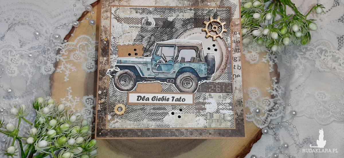 Kartka okolicznościowa, ręcznie wykonana metodą scrapbooking na bazie kraftowej. Kartka do koperty. Oklejona z każdej strony. W środku znajduje się kartka podklejona taśmą dwustronną na życzenia. Mogę też wydrukować życzenia. Wymiary kartki to 14x14 cm. W zestawie z kopertą kraftową.