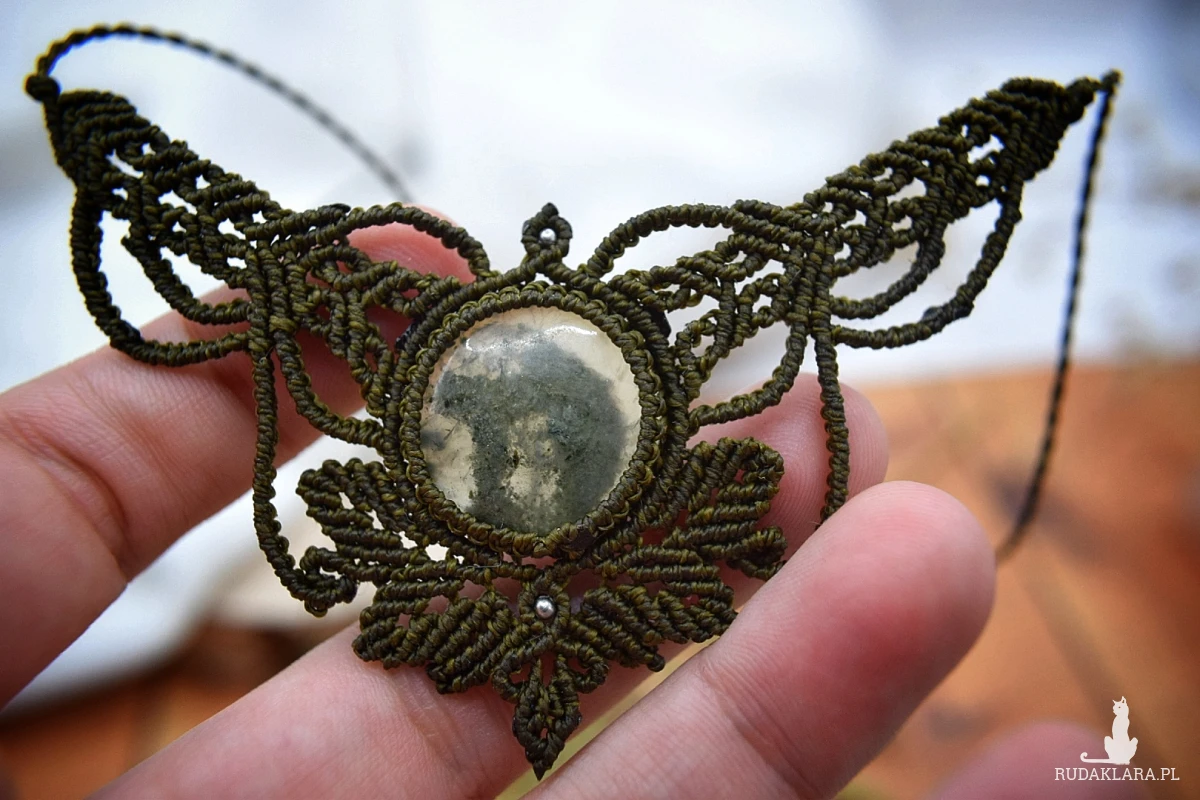 Ręcznie wykonany naszyjnik w technice mikro makramy, tworzony z intencją harmonii 💚