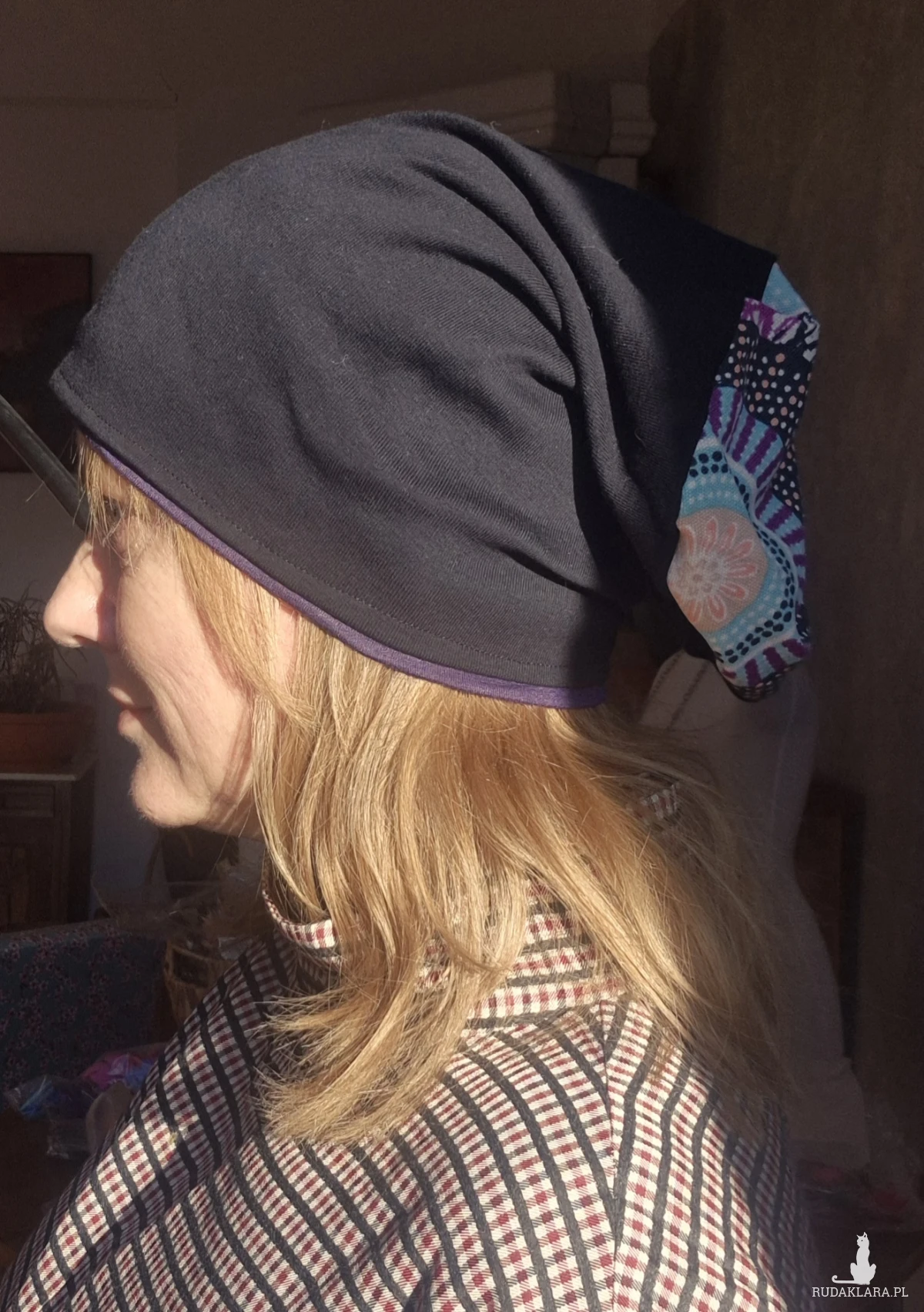 Czarna czapka Smerfetka na podszewce wiosenna rozmiar uniwersalny polecam Box P1