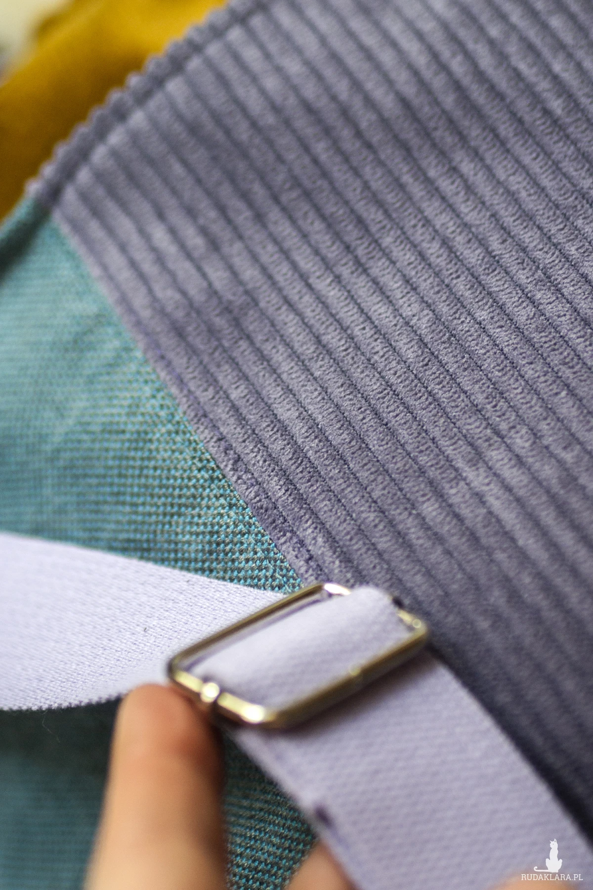 Workoplecak posiada regulowane, bawełniane paski grubości 3cm w kolorze liliowym.