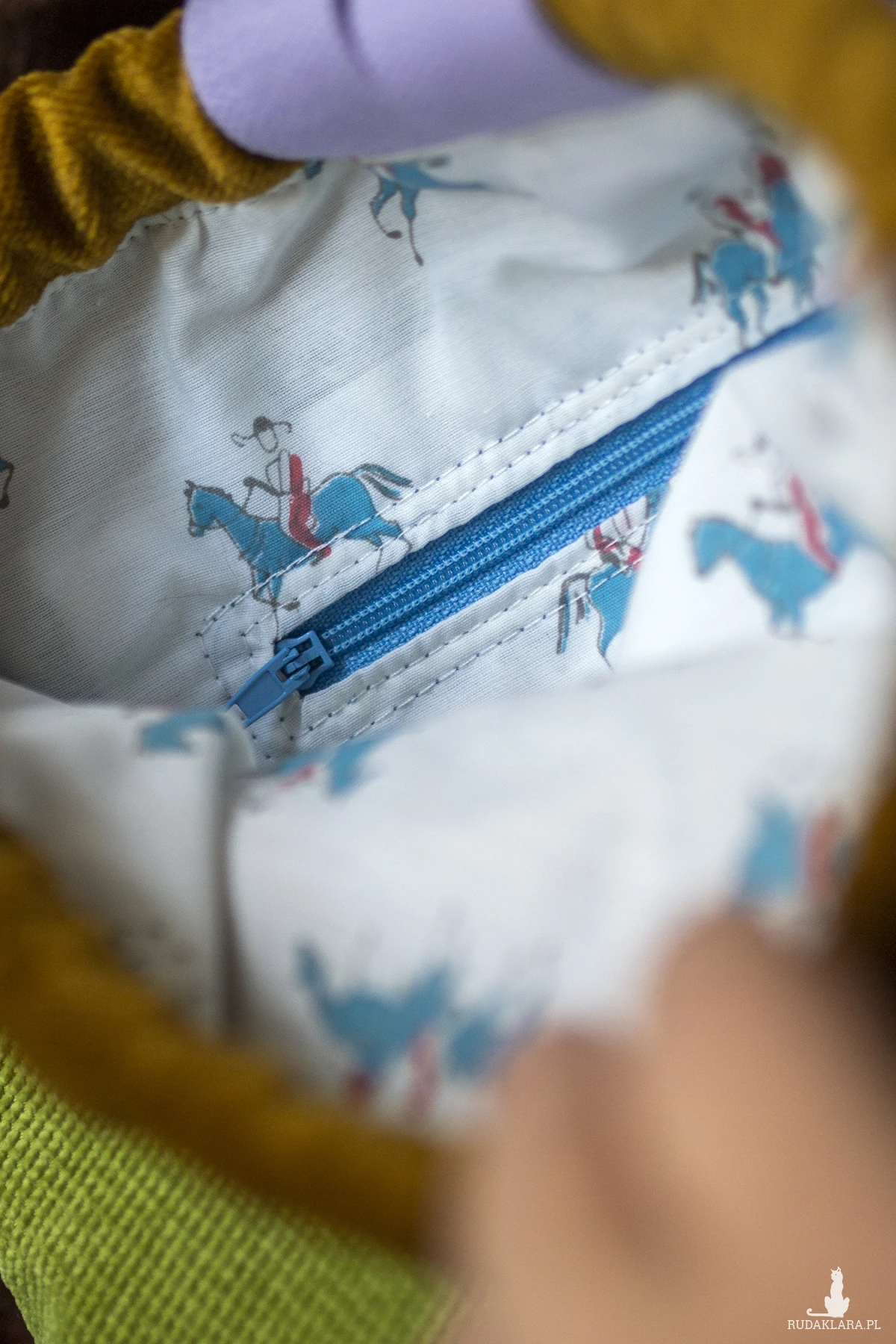 Środek plecaka wykończony jest bawełnianą podszewką.
