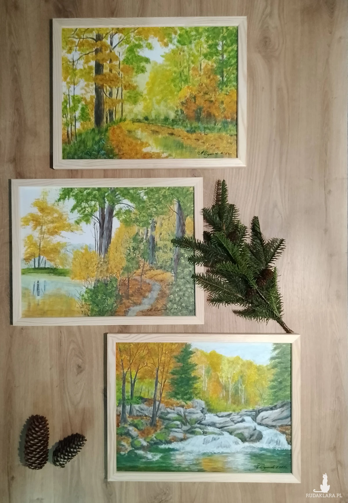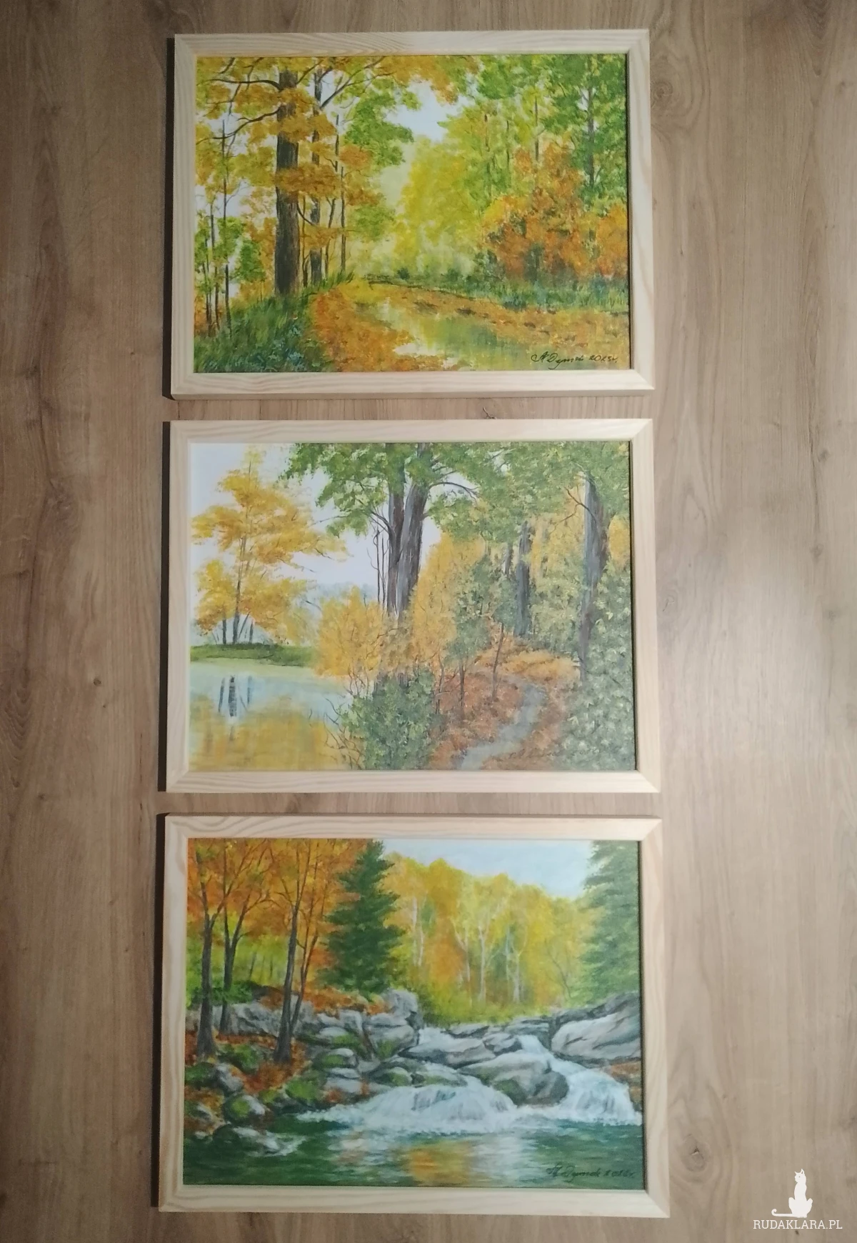 Jeden niepowtarzalny zestaw - TRYPTYK JESIENNY, w którym uchwycono piękno najbardziej barwnej pory roku. Obrazy tworzą spójną serię kolorystyczną, która przepięknie wypełni i udekoruje ściany salonu, sypialni, czy biura.