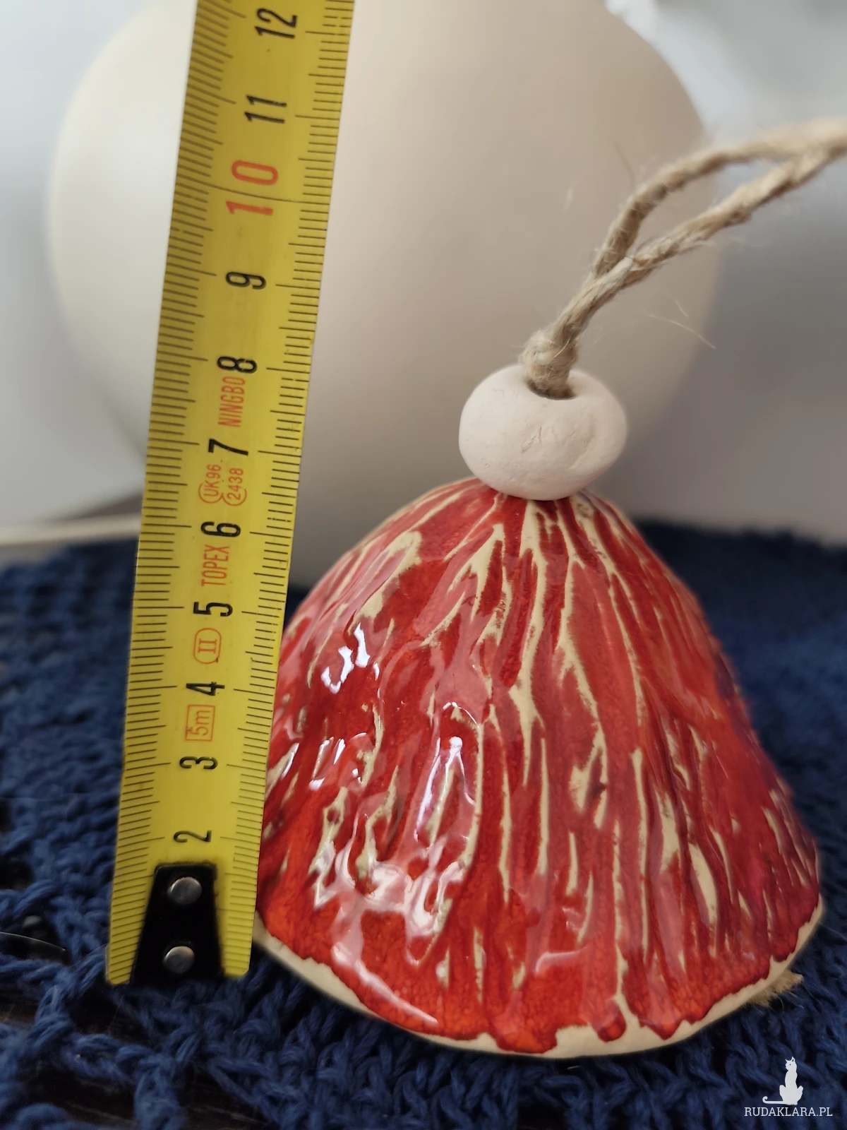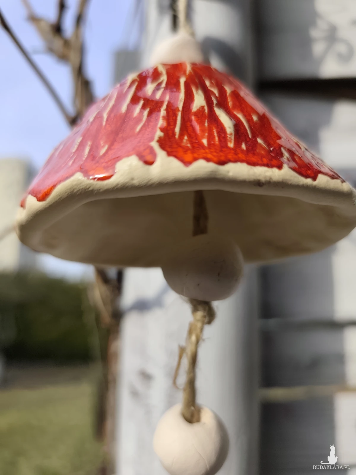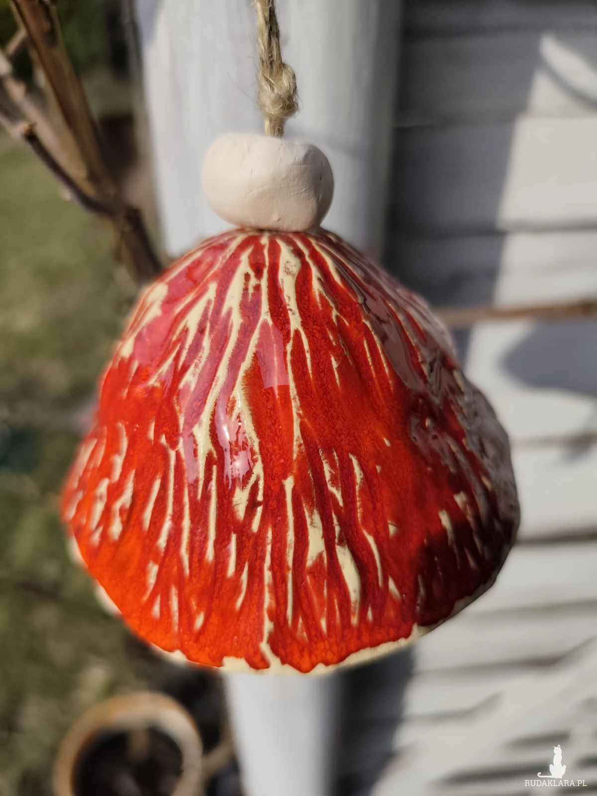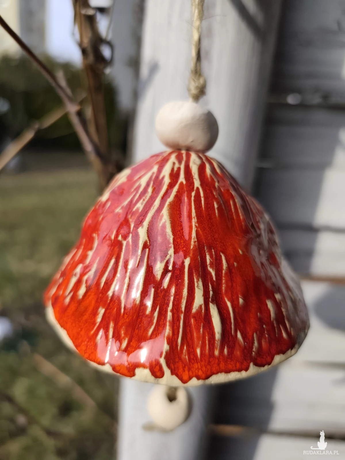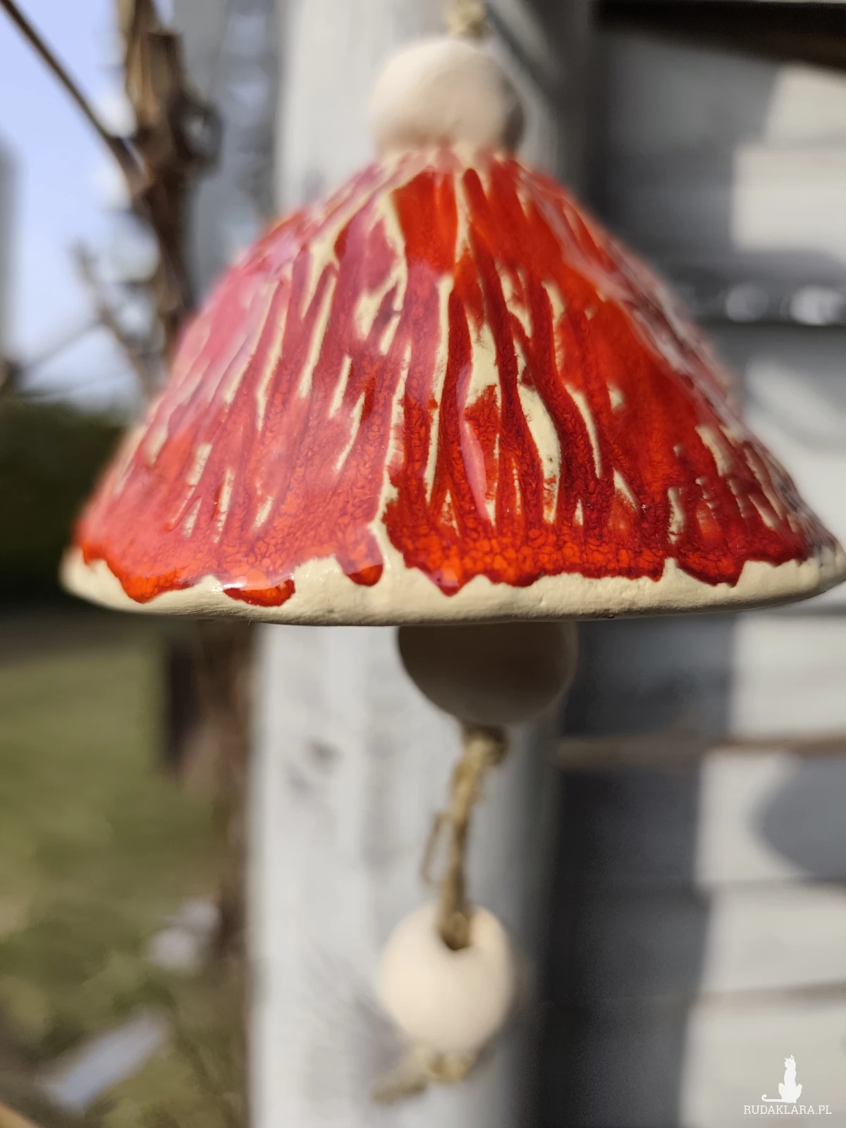 Uroczy dzwoneczek ceramiczny. Piękny dodatek do ogrodu lub na balkon. Polecam. Wykonany ręcznie, szkliwiony i dwukrotnie wypalany w piecu ceramicznym na wysoką temperaturę.