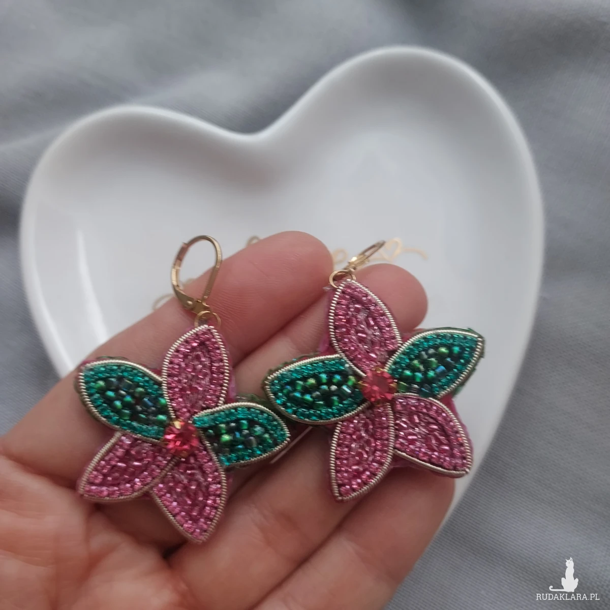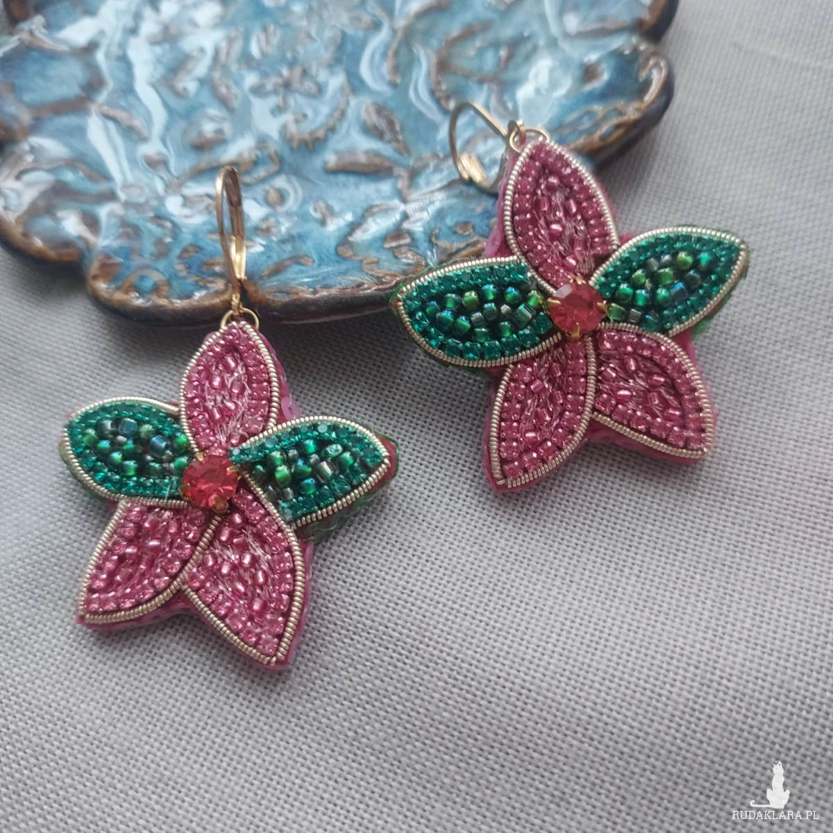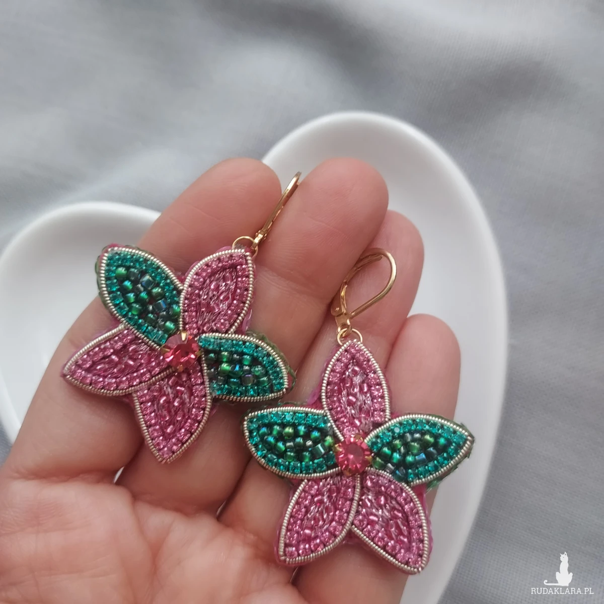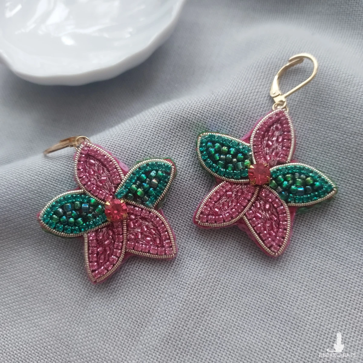 Odkryj wyjątkowe i urocze KWIATOWE kolczyki, które powstały haftem koralikowym oraz płaskim z dbałością o każdy detal.