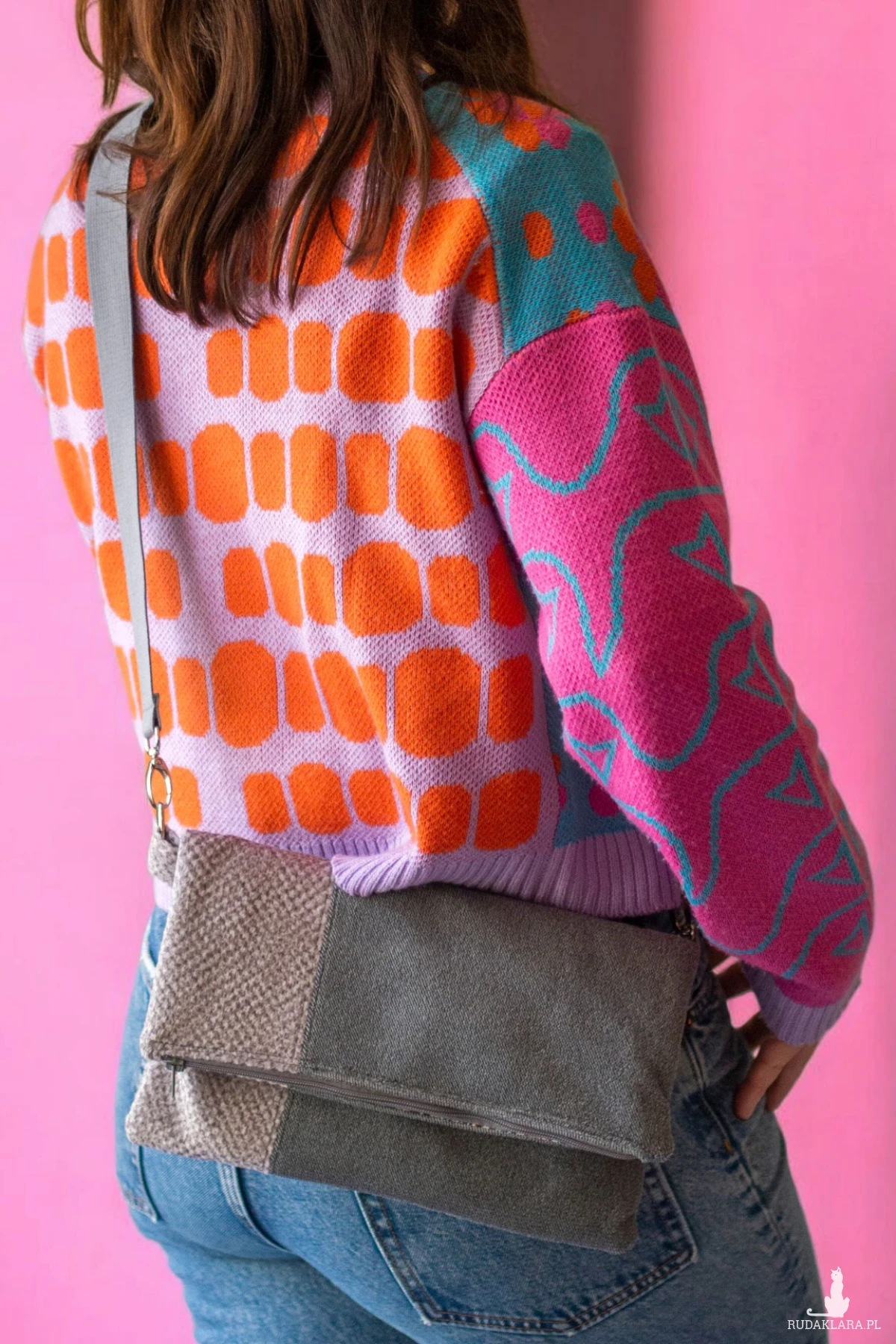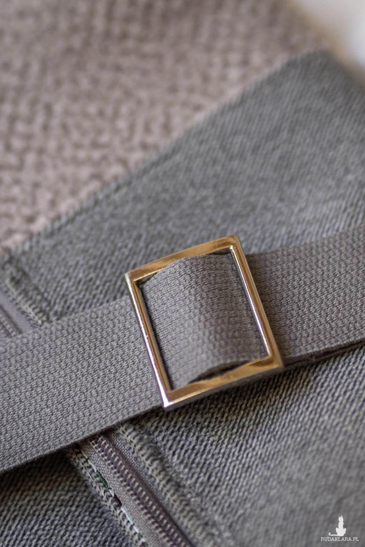 Do torebki dołączony jest regulowany, bawełniany pasek grubości 3cm w kolorze szarym.