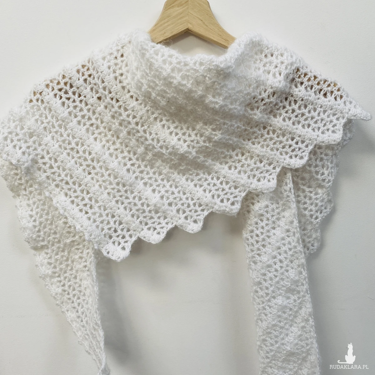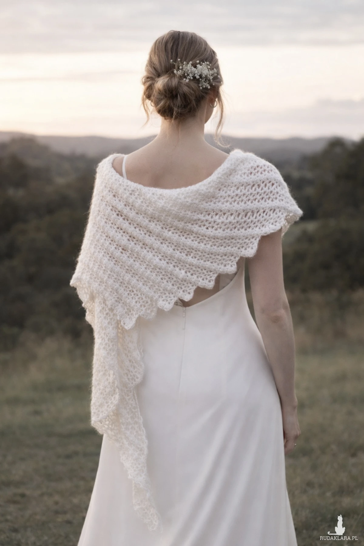 Delikatną, lekką etolę ślubną wykonałam ręcznie na szydełku z miękkiej włóczki Papatya Angora z subtelnym włoskiem. Klasyczna biel pięknie rozświetla stylizację i harmonijnie współgra z suknią ślubną – zarówno minimalistyczną, jak i romantyczną.