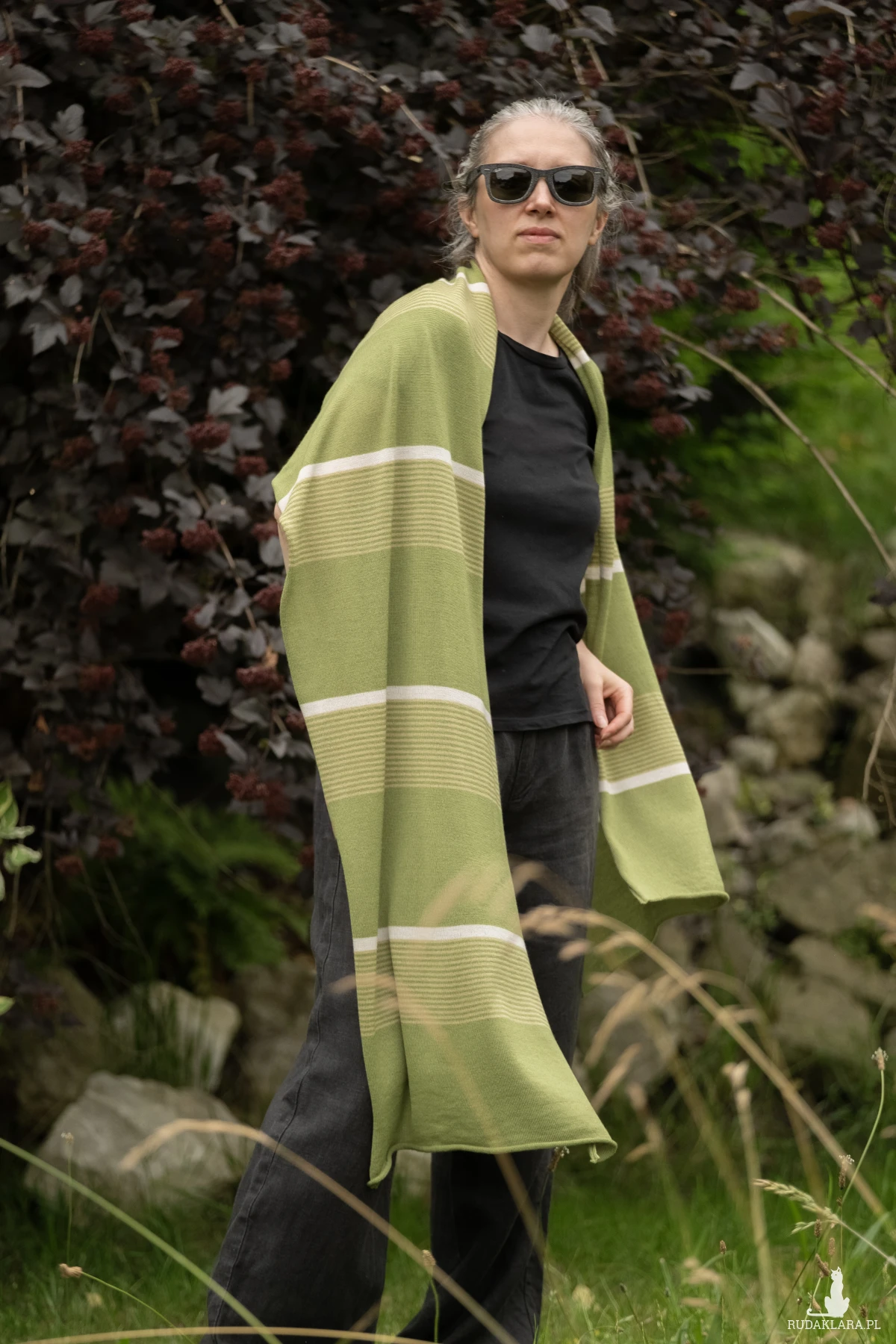 Szal z czystej wełny merino, miękki i delikatny i lekki.