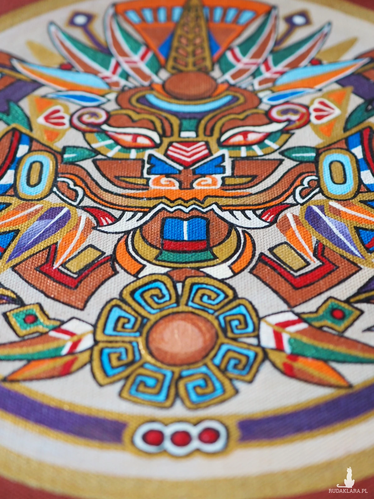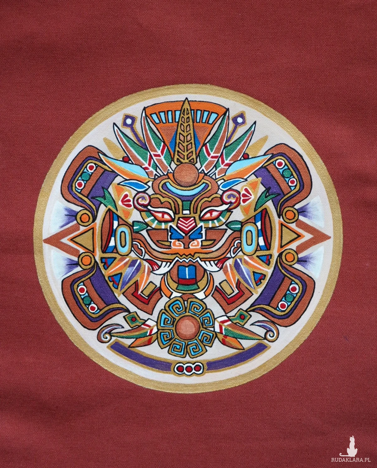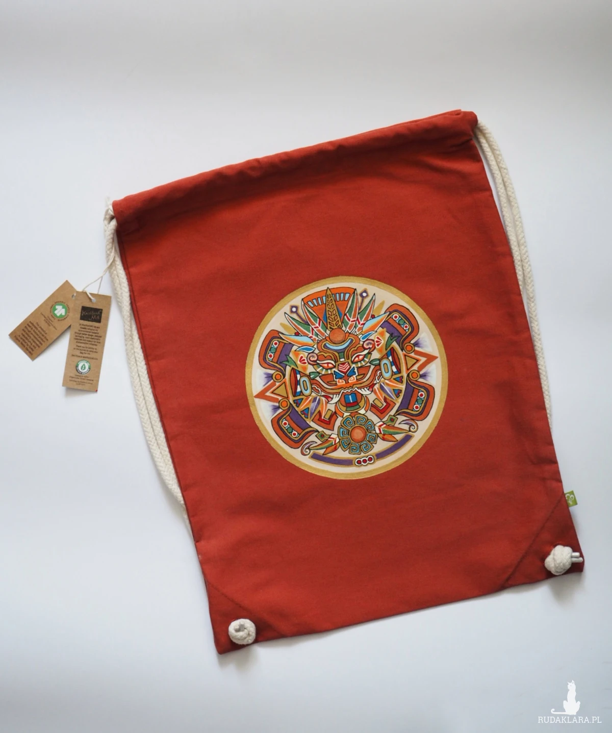 Wyjątkowy, ręcznie malowany płócienny worek z wzorem inspirowanym sztuką Azteków. Jego etniczny styl nawiązuje do oryginalnych indiańskich wzorów, co pozwoliło stworzyć niezwykłą i czarującą torbę, która pomieści wszystko, co zechcesz zabrać na spacer, wycieczkę, do szkoły, pracy czy na trening.